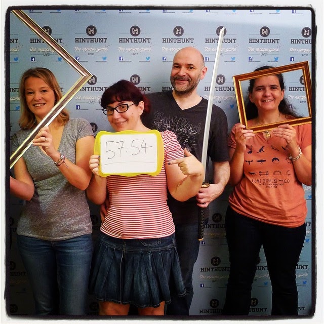 Mais comment ça, 8h25? On avait mis le réveil à 7h45 pour ne pas être bousculés! Je mange des chouquettes au petit-déj’ si je veux. Un léger coup au coeur en voyant arriver Autre Moi et Choco – ça doit bien faire respectivement 4 et 6 ans que je ne les avais pas vues. En comptant Eve, nous sommes 5 à nous attaquer à la Zen Room avec une efficacité redoutable. « Là, il y a des chiffres plein le magazine, je suis sûre que ça veut dire quelque chose! » « …Ouais, c’est les numéros de page. » Nous sommes dehors en 57’54 » avec force braillements victorieux. Le temps de récupérer Junior à Châtelet, et c’est parti pour un burger pas bon avec du coleslaw chelou – mais je m’en fous, je suis hyper contente d’être là, et pour rien au monde je n’échangerais ce moment contre un resto 3 étoiles en moins bonne compagnie. J’aurais bien poursuivi au Starbucks voisin si nous ne devions pas remonter sans tarder vers la porte de Pantin. Du coup, je fais des plans sur la comète: « Chouchou, et si la prochaine fois, on montait deux équipes pour jouer l’une contre l’autre? On se ferait enfermer au même moment dans deux pièces du même jeu, et les derniers sortis paieraient un coup à boire aux plus rapides. » Traverser le parc de la Villette sous un soleil éclatant, avec l’impression de flotter dans une petite bulle de bonheur. Pourquoi faut-il que ce clown soit le sosie de mon ex-mari? Malgré quelques passages un peu mous et le grand inconfort des gradins, le spectacle du Cirque Plume est formidable, plein de poésie, d’énergie et de chaleur humaine. Deux géocaches voisines se refusent à nous; tant pis, rien ne peut gâcher ma bonne humeur. Non, même pas le fait d’être descendus à gare du Nord alors que le traiteur japonais où on veut prendre des plats à emporter est à côté de la gare de l’Est. Le thé vert froid en canette, c’est vraiment spécial, mais ça me rappelle le Japon et ça va bien avec le thème de la journée. La douche glacée passe mieux le deuxième soir; si ça se trouve, c’est juste un coup à prendre. Je remercie les filles par MP pour la super partie de Hint Hunt. « La prochaine fois, on pourrait monter deux équipes pour jouer l’une contre l’autre », suggère Autre Moi, et ça me fait tout bizarre qu’on puisse encore être synchros autant de temps après. Mais je commence à me dire que ce serait super de revenir à Paris pour mon prochain anniversaire et fêter ça avec un escape game qui rassemblerait un maximum de mes amis locaux…