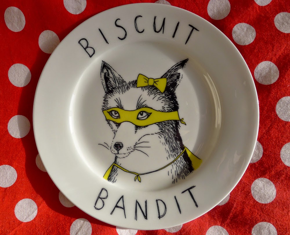 Bien que j’aie vu beaucoup de jolies choses, j’ai limité mes emplettes à trois objets dont je souhaite vous recommander les créateurs. Commençons par les animaux gourmands que Jimbobart appose sur de la céramique, et que vous pouvez retrouver dans sa boutique Etsy. Sa vaisselle passe au lave-vaisselle et au micro-ondes, et j’étais un peu forcée de craquer sur une jolie assiette à dessert « Biscuit Bandit:
