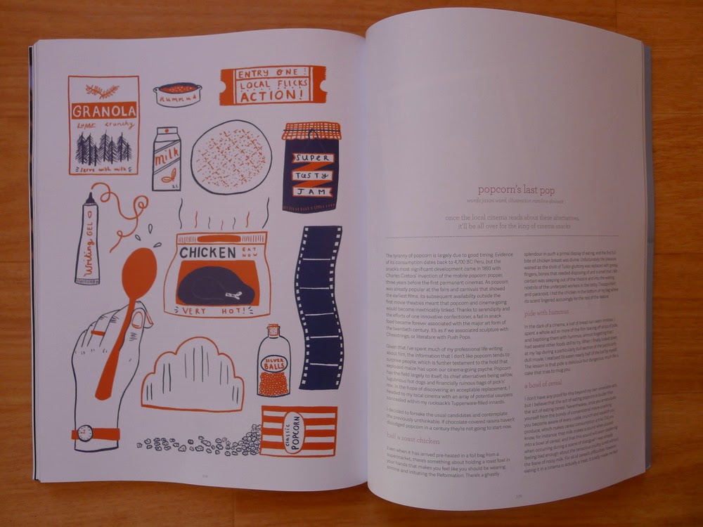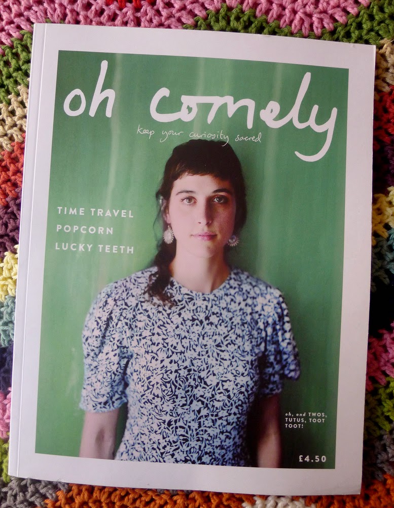 Bien que j’aie cessé d’acheter de la presse féminine classique, je continue à beaucoup aimer l’objet magazine et à rechercher sans cesse de nouveaux titres susceptibles de m’intéresser. Durant ce week-end à Londres, je suis tombée sur une couverture dans les tons verts dont l’accroche ultra-sobre m’a interpelée: « Time travel/Popcorn/Lucky Teeth ». Il ne m’en a pas fallu davantage pour embarquer le numéro 22 d’Oh Comely. A l’intérieur, j’ai découvert une maquette dépouillée et des illustrations minimalistes, beaucoup moins colorées que ce qui m’attire d’ordinaire. Mais j’ai tout de suite été séduite par le concept original qu’avait choisi l’équipe de rédaction: explorer diverses facettes du nombre 22. Ainsi, on peut lire l’interview d’une mathématicienne sur le sujet, des portraits de gens qui habitent au numéro 22 de leur rue ou se connaissent depuis 22 ans, le récit d’une expérience culinaire consistant à composer un repas à partir du numéro 22 des menus de plusieurs restaurants asiatiques… Très éloigné du pseudo-glamour de la presse féminine classique, le magazine ne cherche pas à vendre de fringues ou de cosmétiques (il n’y a d’ailleurs que 2 ou 3 pages de publicité réservées à de petits créateurs) et ne promeut aucun stéréotype de genre. Il ne milite pas non plus contre quoi que ce soit: il se contente de s’intéresser à des sujets aussi décalés qu’anodins, sans importance réelle mais non dénués d’intérêt humain et souvent riches en poésie. Sa fantaisie n’est pas visuelle mais intellectuelle. Bizarro-contemplatif, il devrait beaucoup plaire aux fans de Miranda July. En tout cas, il a suffisamment excité ma curiosité pour que je m’abonne aussitôt. Si jamais vous voulez en faire autant, vous pouvez obtenir une réduction de £2 en passant par ce lien. Besoin d’un peu plus que cet article pour vous faire une opinion? Oh Comely tient aussi un très chouette blog (dans lequel, curieusement, on retrouve beaucoup plus de rubriques « classiques » que dans le magazine lui-même).