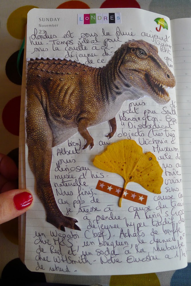 – Tant que vous n’avez pas l’intention de dessiner, n’importe quel type de papier peut convenir, mais s’il est trop fin (comme celui des Moleskine que j’utilise, justement!), l’encre risque de traverser. Pour pallier ce problème, j’écris sur les pages de droite et colle mes souvenirs sur les pages de gauche.