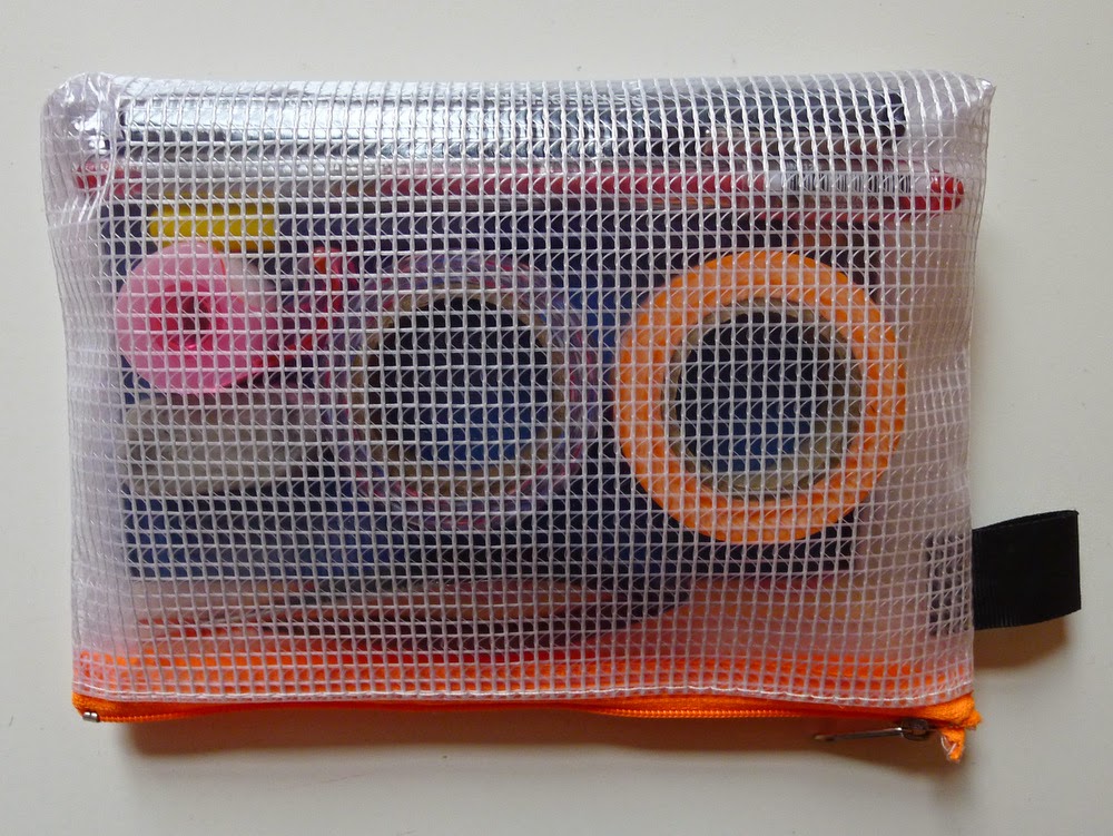 J’emporte toujours une jolie trousse tout-terrain (type trousse d’écolier) dans laquelle je fourre quelques essentiels: