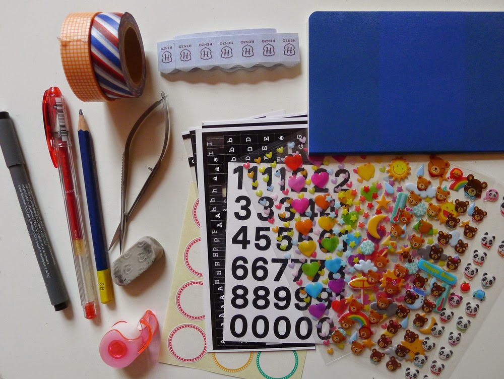 – quelques stickers à thème (j’aime bien ceux qui représentent des soleils, des nuages et autres phénomènes météo, mais aussi les étoiles et les coeurs dont je me sers pour souligner les choses qui m’ont particulièrement plu)