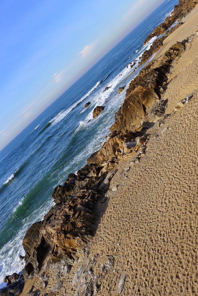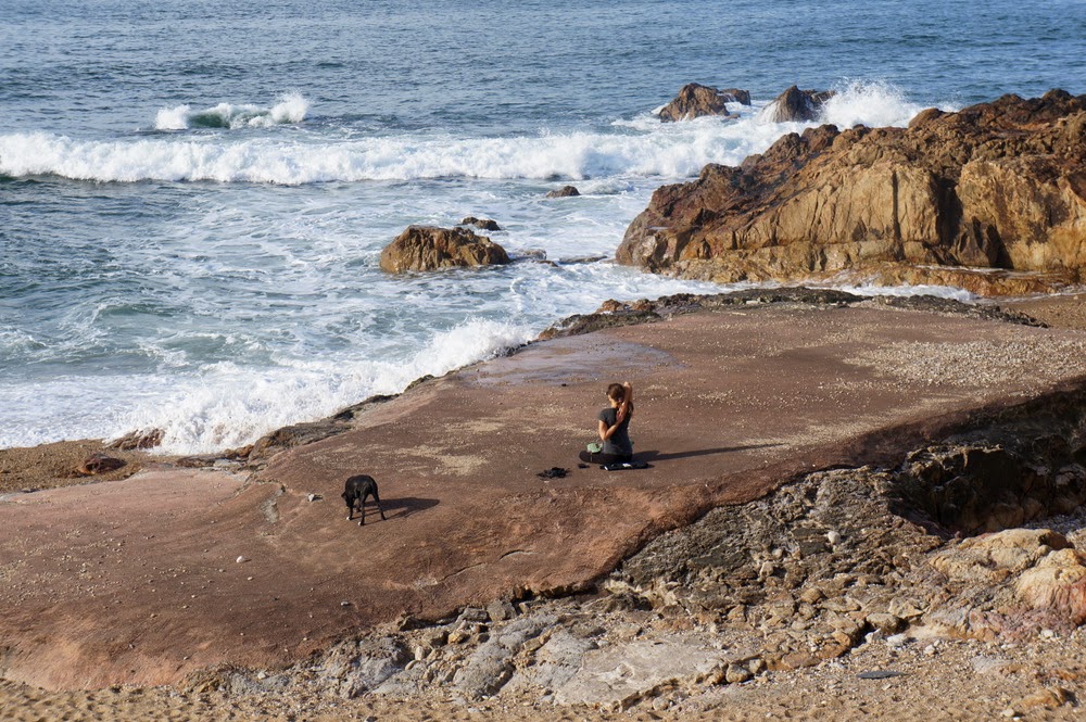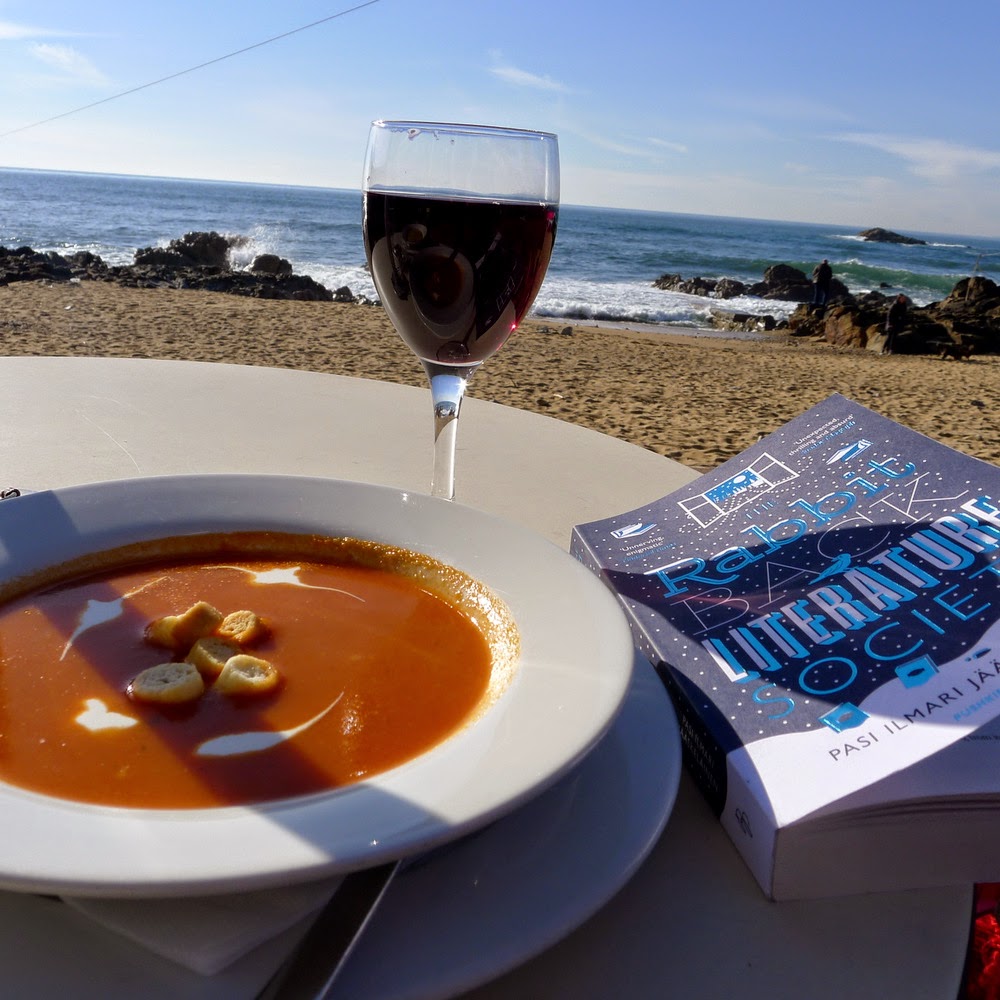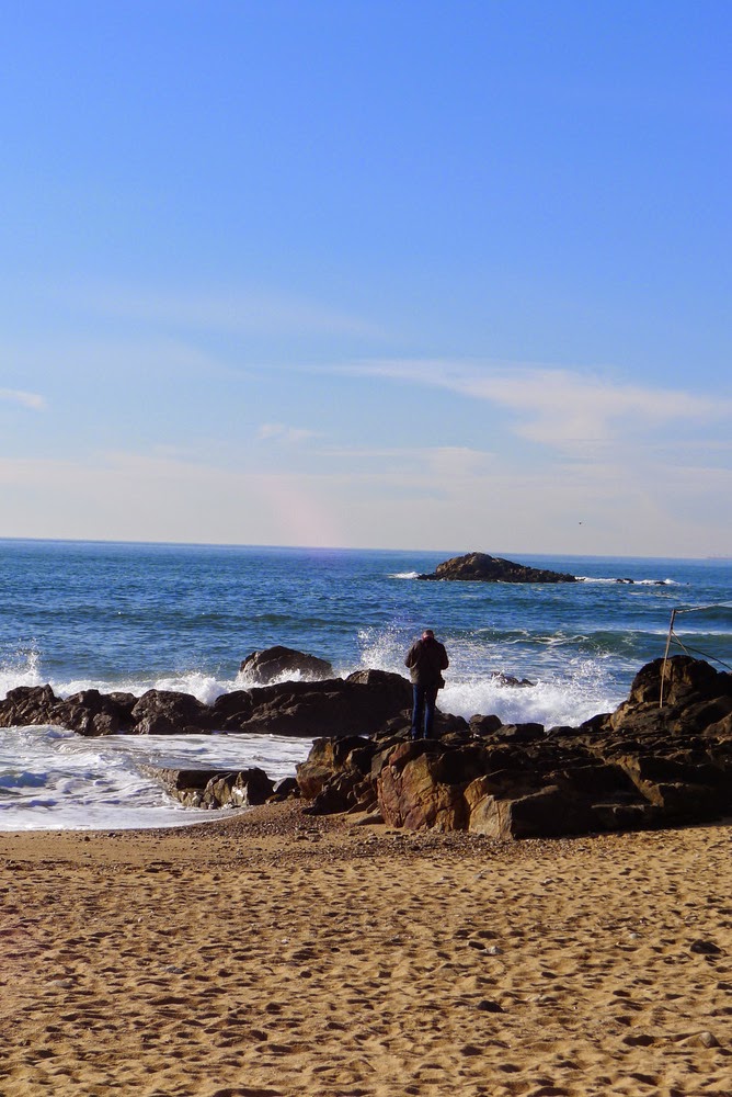 En attendant l’arrivée de notre repas, j’ai continué l’excellent bouquin commencé l’avant-veille tandis que Chouchou mitraillait en rafale les vagues qui venaient se briser sur les rochers juste devant nous. J’ai siroté un verre de vin du Douro avec un sentiment de profonde plénitude, et la conscience de vivre un moment parfait avec ma personne préférée au monde. A cet instant, je n’aurais voulu être nulle part ailleurs et surtout avec personne d’autre.