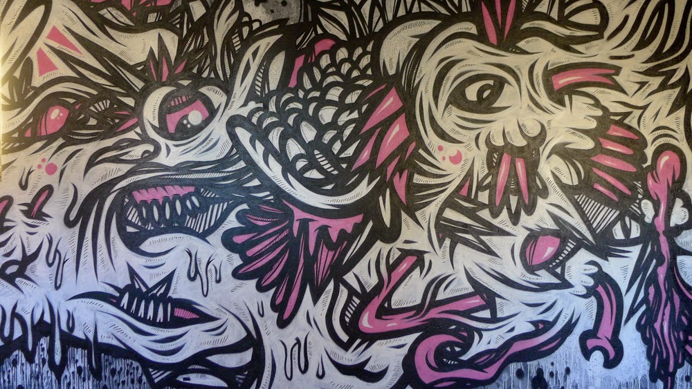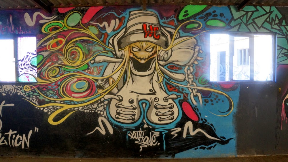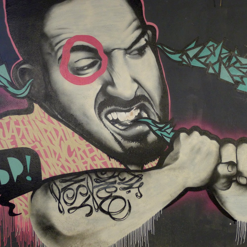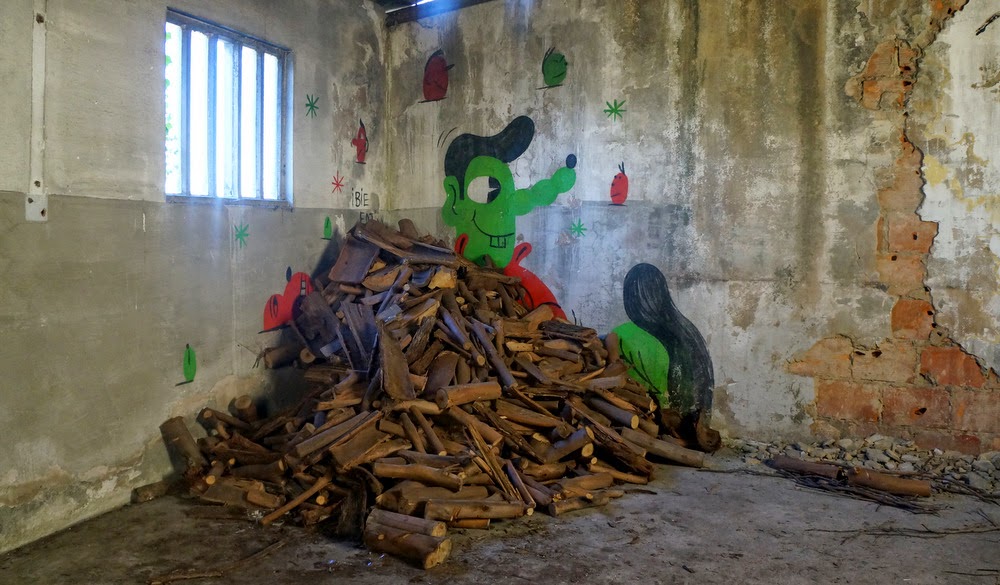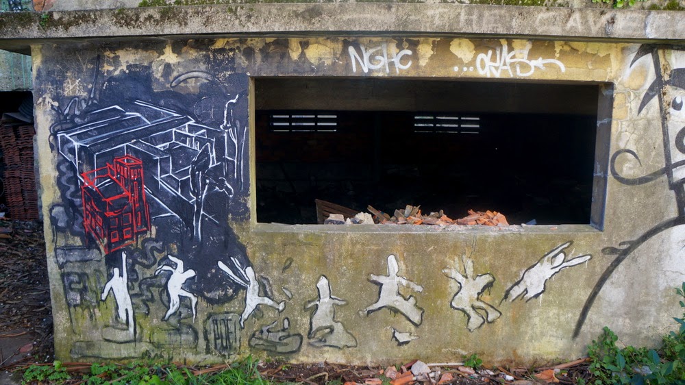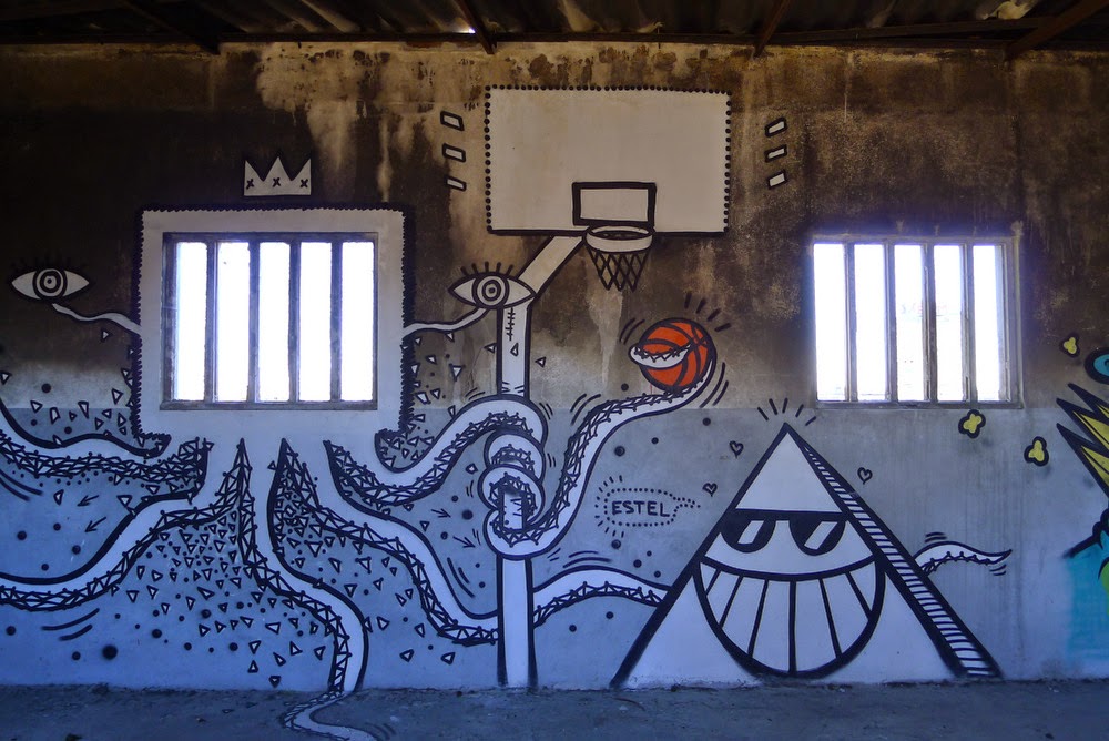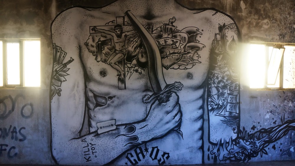 Voici bien un endroit où je n’aurais jamais mis les pieds sans le geocaching! Il faut dire que la Fabrica Social, fondation artistique créée par le sculpteur portugais José Rodrigues, est située quelque peu à l’écart des sentiers battus, tout en haut de la rua Santa Catarina (interminable artère piétonnière commerçante dépourvue de charme comme d’intérêt). Il faut aller la chercher au sommet d’une volée de marches passablement crevante et au fond d’une impasse bien planquée – aucune chance de tomber dessus par hasard! Mais si on la contourne pendant les heures d’ouverture, on accède à l’un des lieux les plus étranges et méconnus de Porto: un ensemble de maisons en ruines devenu un haut lieu du street art. Les plus grands artistes du pays y ont signé des oeuvres étranges, parfois choquantes, souvent troublantes mais toujours photogéniques…