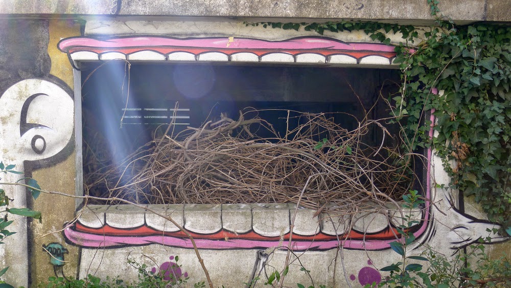 J’avoue ne pas être fan d’urban decay (au contraire de Chouchou qui adore ça); néanmoins, l’endroit vaut vraiment le coup d’oeil. J’imagine qu’il peut être flippant dans certaines circonstances, mais nous l’avons visité en pleine journée, alors qu’il faisait un grand soleil, sans y croiser âme qui vive – pas même un rat ou un écureuil. Et puis, nous avons trouvé la cache, ce qui est toujours excellent pour le moral!