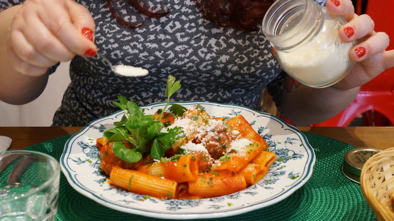 1 plat de rigatoni al polpette pour moi et de ravioli al pesto pour Chouchou, plus 1/2 part de gâteau ricotta-citron chacun à la Fabbrica di Marco – miam, et même, super miam!