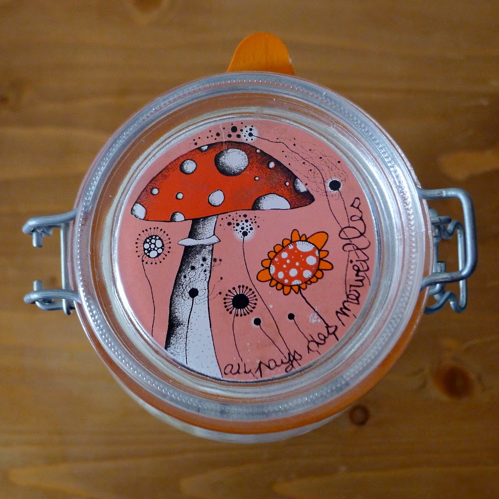 Ce bocal est vraiment très beau ! En plus, les dessins collent bien avec le nouvel usage que tu lui as donné.