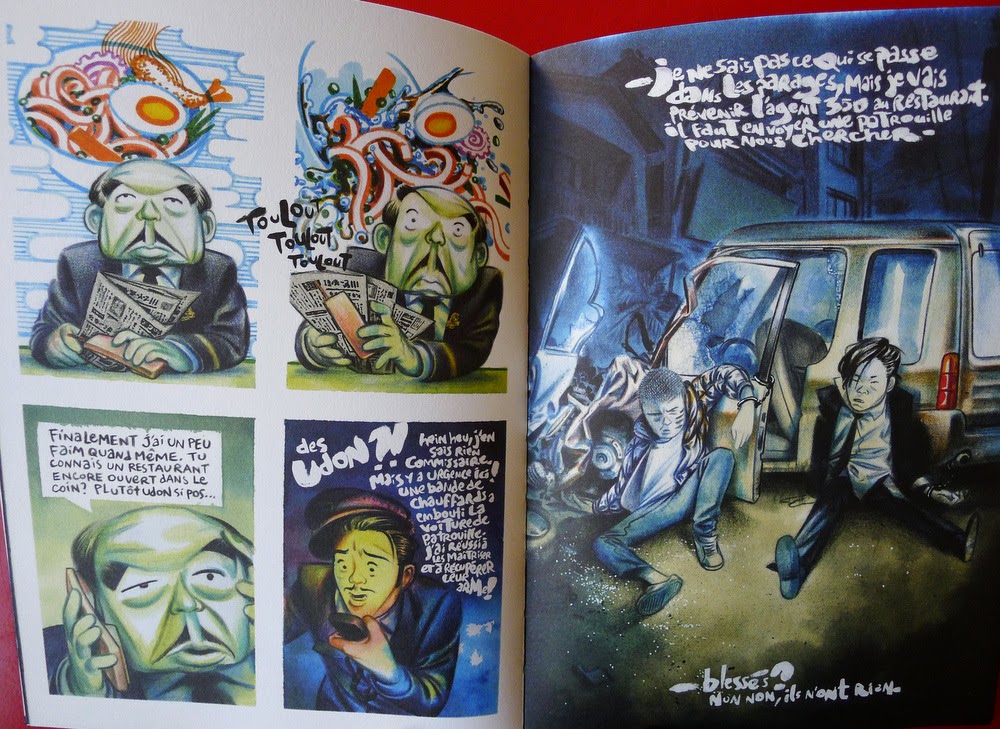 Ce n’est pas un secret: j’ai adoré les deux précédents livres de Florent Chavouet. Pourtant, j’ai tardé à faire l’acquisition de celui-ci. Un auteur doué pour le récit de voyage et l’autobiographie ne l’est pas nécessairement pour la fiction, et j’avoue que le sujet ne me tentait pas du tout. Et puis, j’ai fini par craquer en me disant qu’au pire, je pourrais toujours admirer les beaux dessins.