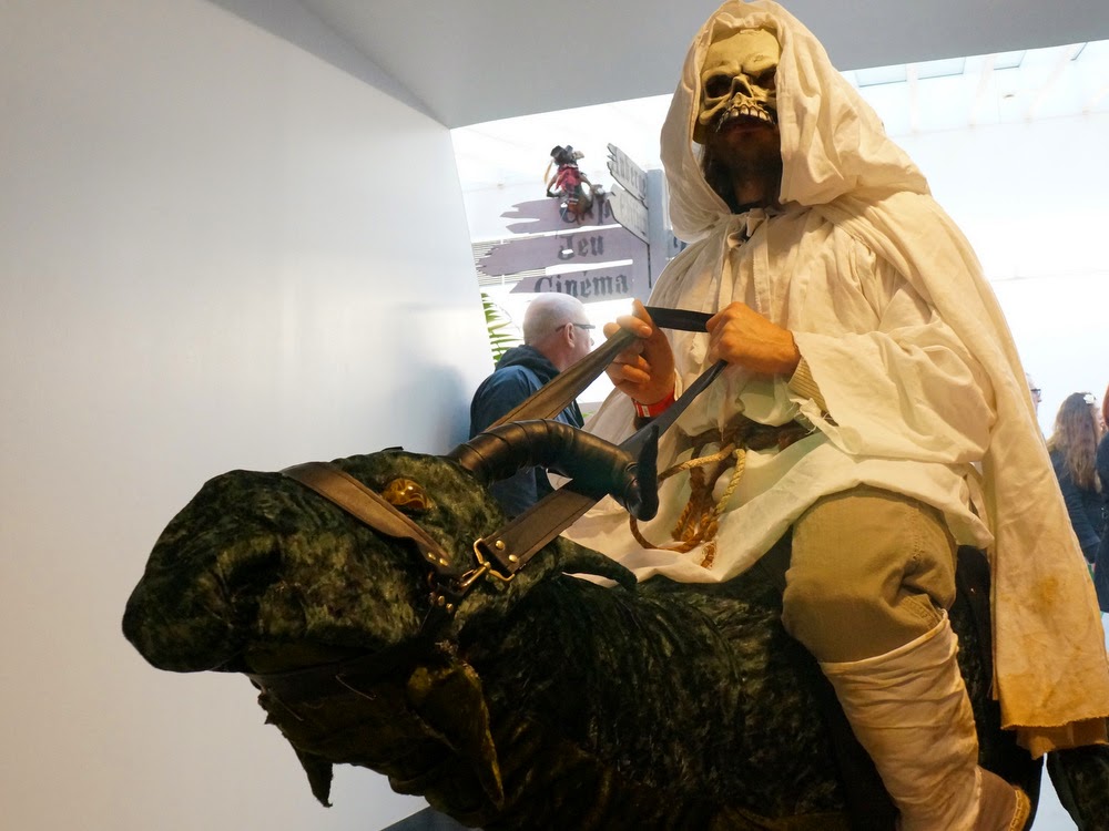 Après ça, j’ai essayé de saluer un maximum de gens que je connais, mais… je n’ai même pas eu le courage d’aller me poser à la buvette afin de passer un moment avec eux: il aurait fallu faire la queue pour acheter des jetons, puis faire la queue pour échanger les jetons conter une boisson, et enfin attendre qu’une table se libère. C’était trop d’efforts à exiger de mes lombaires en compote depuis le matin. Idem pour les quelques dédicaces que j’aurais aimé obtenir: je ne me voyais pas piétiner encore une heure devant la table de chaque dessinateur. Les Gasparde étant dans des dispositions similaires, nous avons pris le chemin du retour à 16h seulement, assez peu contents de notre journée. Je ne blâme pas les organisateurs, qui sont tous bénévoles et abattent un travail considérable pour livrer une manifestation très riche, globalement bien structurée. Mais Trolls & Légendes est un peu victime de son succès: la foule énorme qu’il attire désormais gâche complètement mon plaisir. Je suis au regret de dire qu’on ne m’y reverra pas en 2017.