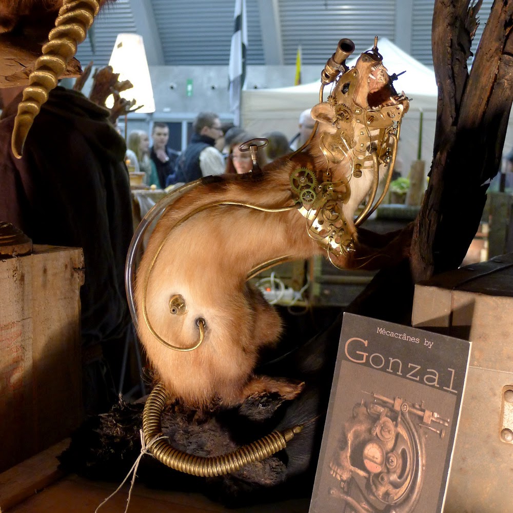 Gonzal, avec ses « mécacrânes » et ses animaux empaillés steampunkisants