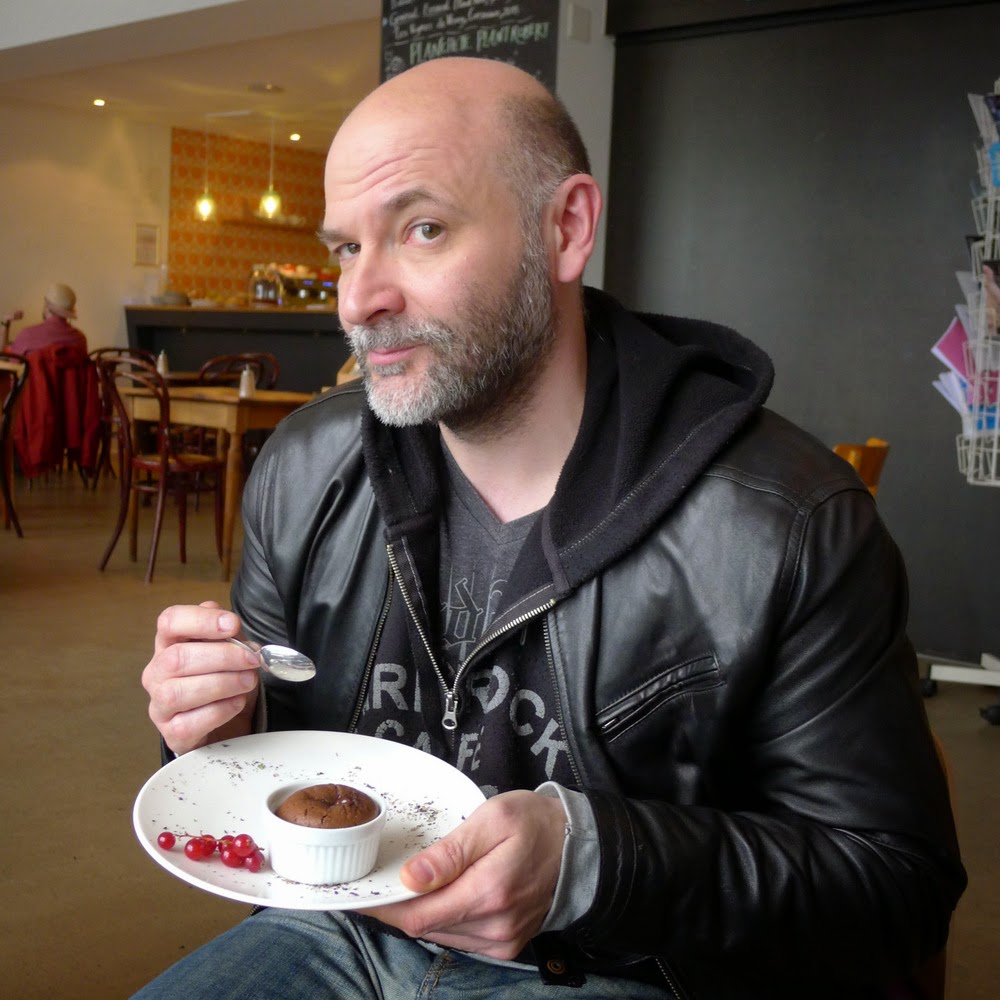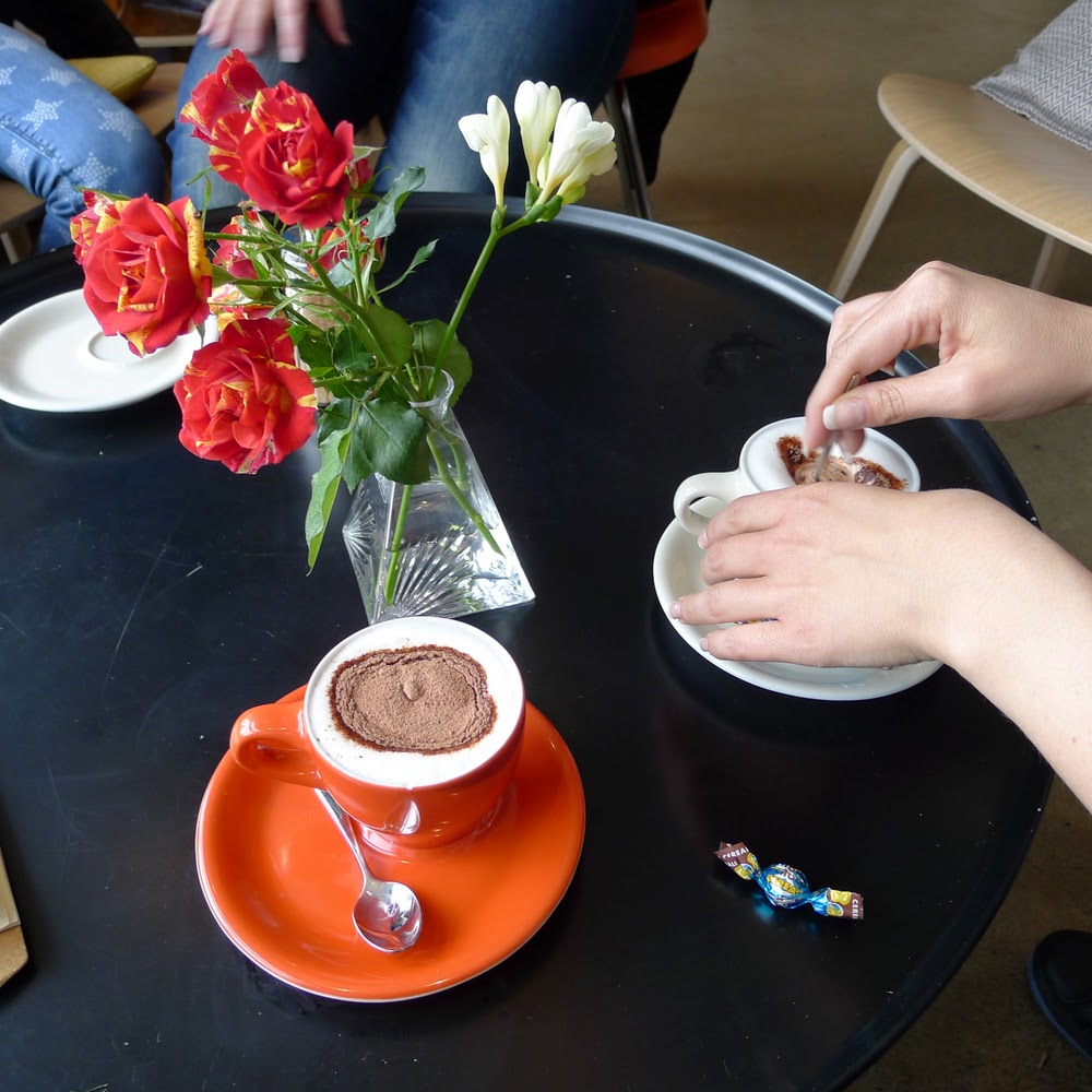 café littéraire près de l’Alimentarium. Le chocolat chaud n’est pas bon du tout, mais l’endroit se révèle fort agréable, et nous y passons près de deux heures à bavarder.