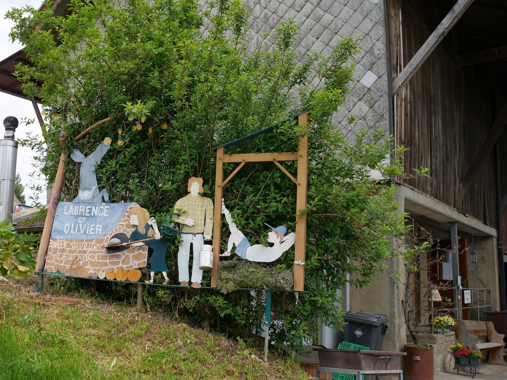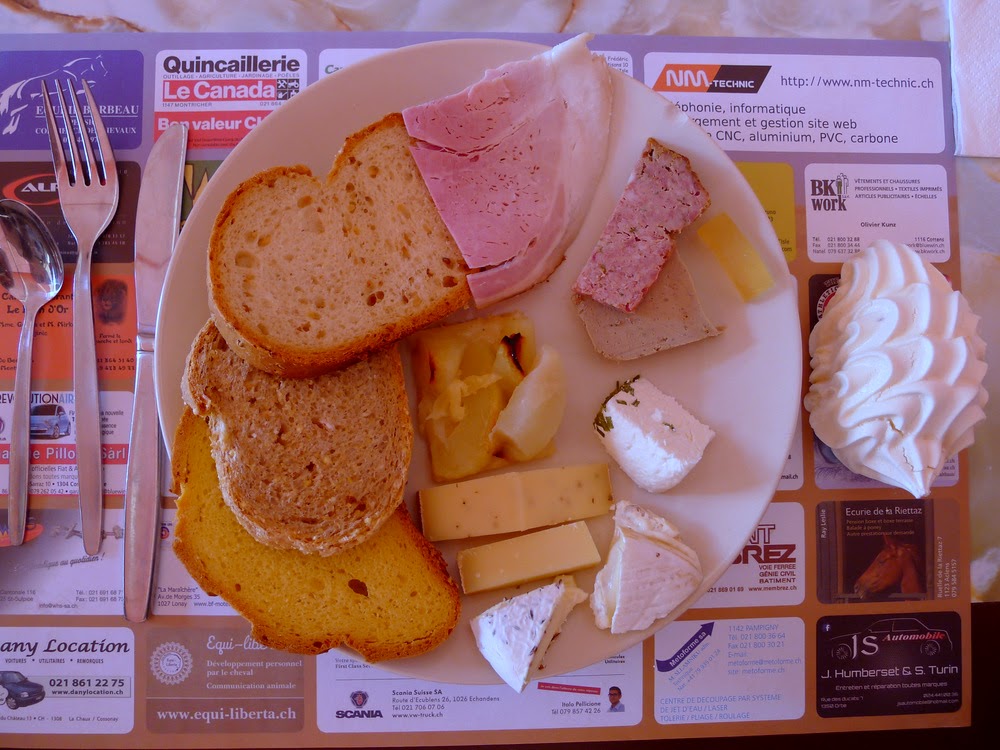 Merci la fondue d’hier soir pour cette nuit remplie de cauchemars; la prochaine fois, je tâcherai d’avoir les yeux moins gros que le ventre. Pour autant, suis-je dégoûtée de la nourriture, ai-je l’appétit coupé pour les deux jours à venir? Même pas. Lorsque nous arrivons sur le coup de 11h à la ferme aux Cretegny, j’ai de nouveau une faim de loup. Et ce serait de toute façon pécher que de ne pas faire honneur à ce superbe brunch presque exclusivement composé de produits fabriqués sur place. J’aime toujours autant la rösti, et cette cuchaule est une merveille. Mais attention au gaspillage: les deux cochons sont au régime! Bien que citadine endurcie, j’avoue: je ne déteste pas l’odeur du crottin. Par contre, la décharge que je me prends en touchant involontairement la clôture électrifiée non signalée de l’enclos des poules et des lapins, je m’en serais bien passée (même si c’est plus surprenant que réellement douloureux).