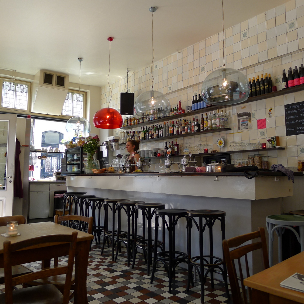 Enfin, ZE adresse shopping de brols diverzévariés, mais qui font tous envie. Belle sélection de carnets, de magnifiques livres de cuisine (hélas tous en néerlandais), de tasses, d’objets de déco, de sacs, de jouets, de bijoux et autres menus cadeaux hyper originaux. J’ai craqué pour un bocal rempli de petits mots inspirants, écrits sur des matériaux recyclés et pliés en forme d’origami, à ouvrir au rythme d’un le premier de chaque mois pendant un an. Il est pratiquement impossible de ressortir les mains vides de cette caverne d’Ali Baba du bon goût. Possibilité de se poser à l’intérieur pour boire un rafraîchissement autour d’une grande table.