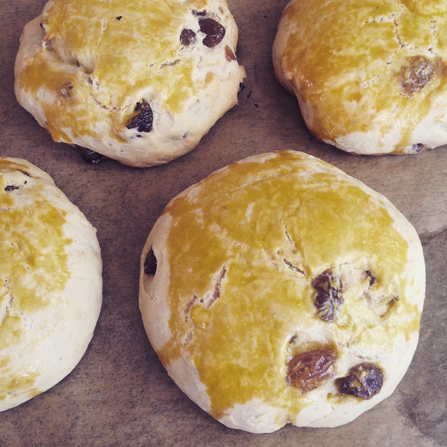 La recette à l’Earl Grey issue d’une ancienne Thé Box est imprécise à souhait, mais sans doute pas autant que mes mesures car je n’ai ni verre doseur ni balance, ayant oublié de remplacer ceux que nous avons cassé il y a déjà… pfiou, au moins ça. En plus, ma levure est périmée. Ma pâte colle un peu malgré un rajout de farine, ce qui rend difficile l’utilisation d’une tasse retournée en guide d’emporte-pièce, et au final, je modèle mes scones à la main. Au sortir du four, légèrement plus compacts que le pain de voyage nain, ils peuvent éventuellement être biclassés « armes contondantes ». Mais pour le goûter, euh, je vais plutôt manger une banane.