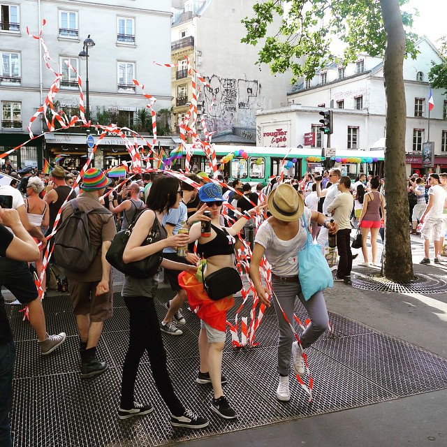 Je pourrais retenir mon diagnostic de peau chez Kiehl’s, ou le mugicha découvert dans un super restaurant japonais, mais la nouvelle chose la plus marquante de ce samedi, c’est quand même cette Marche des Fiertés que je vois passer pour la première fois. Je craignais qu’elle ne gâche ma rencontre de lectrices chez Betjeman & Barton, devant laquelle elle défile à partir de 17h30, et en fait, je suis ravie de cette occasion d’y assister. Tant de gens qui manifestent aussi festivement et contre rien du tout, je trouve ça assez génial, surtout le lendemain de la légalisation du mariage pour tous dans l’ensemble des USA – de quoi faire le plein de bonne énergie!