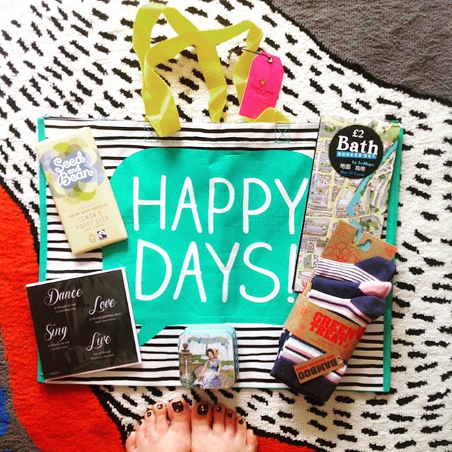 – un carrier bag « Happy Days », qui tombe à pic car j’ai égaré mon carrier bag précédent (un cabas en toile Irregular Choice génial) il y a quelques mois; il sera très pratique pour faire mes courses les jours où je n’ai pas prévu d’acheter assez de choses pour emporter mon caddie de mamie