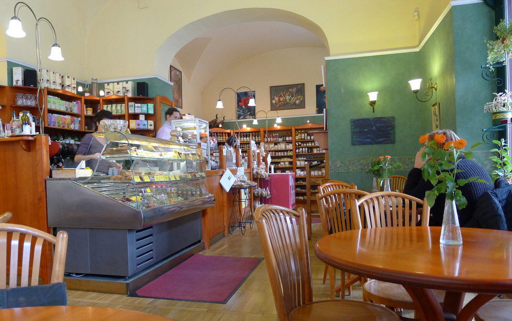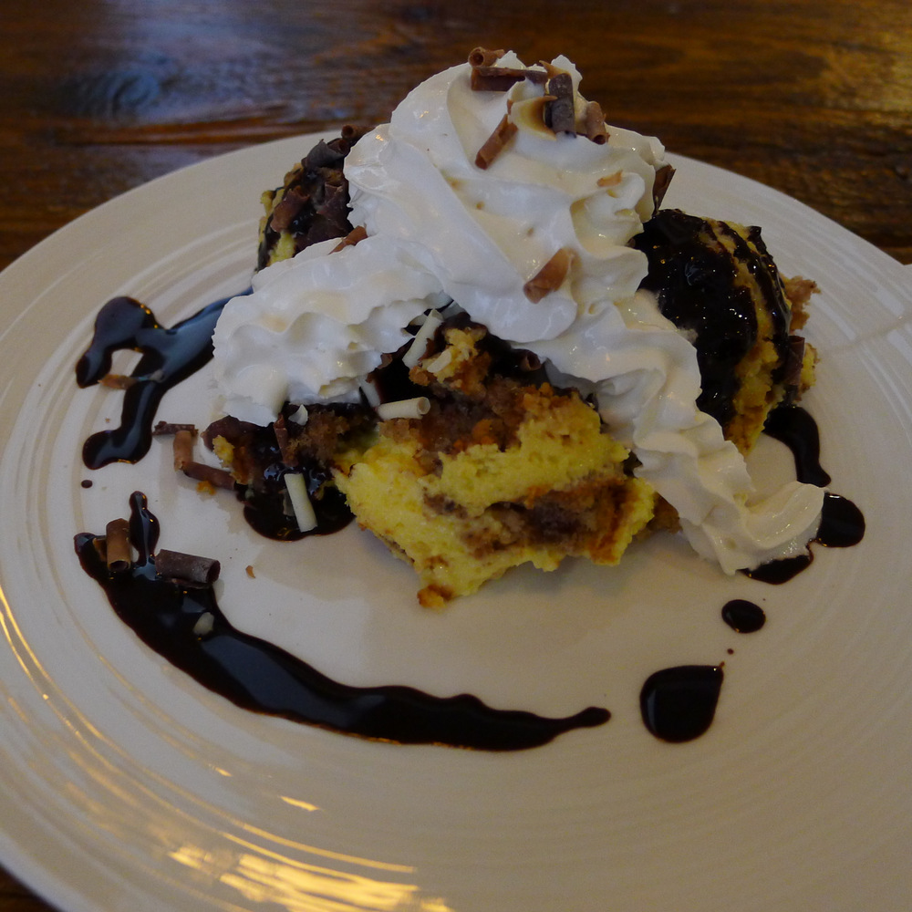 Nous repassons à l’appart’ tout proche pour que Chouchou puisse appeler une cliente au calme. Puis nous repartons en quête d’un bar sympa avec wifi. Le Instant à thème « forêt enchantée », qui semblait si prometteur dans notre guide, nous rebute tous les deux instantanément, et nous finissons comme l’avant-veille chez Frappans dans Kiraly Utca. Au lieu d’un cocktail, vu qu’il est tôt et que j’ai un début de migraine, je prends une limonade maison délicieuse et partage un somloi avec Chouchou: sponge cake + noix + raisins secs + rhum + sauce chocolat + chantilly = MIAM! Nous surfons un moment puis dînons de bonne heure de monstrueux plats de pâtes.