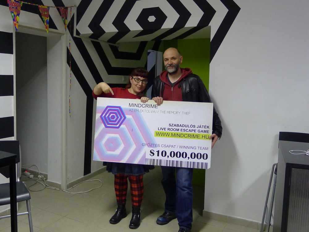 Mind Crime. La salle est basée sur le même concept que le film « Inception »: nous sommes dans l’esprit d’un criminel et nous devons fouiller ses souvenirs, qui remontent le cours de sa vie, pour trouver le numéro et le code d’accès de son compte bancaire. La déco est peu recherchée dans la première pièce, et la deuxième est quasiment plongée dans le noir, mais nous adorons la troisième pour son efficacité visuelle. Bien qu’assez originales, les énigmes nous paraissent faciles, et nous finissons en 51’32 » avec très peu d’aide de la GM. Tout ça pour 6 000 forints, soit une vingtaine d’euros à deux. On est loin des prix des escape games français (généralement, une centaine d’euros la partie quel que soit le nombre de joueurs). Ca vaut vraiment le coup de se faire plaisir!