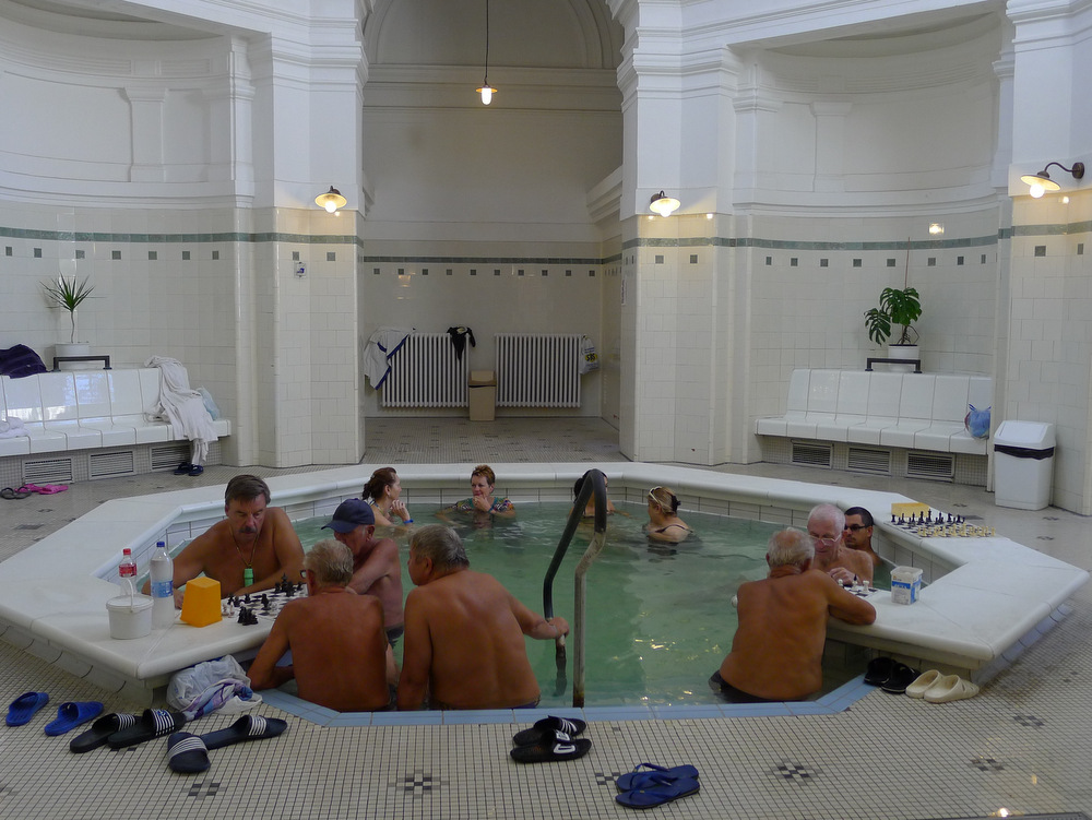 Nous avions eu exactement la même impression en arrivant dans le hall des bains Széchnyi. Et en jetant un coup d'oeil par la fenêtre, nous avions pu voir que les bains extérieurs étaient horriblement surpeuplés (c'était en plein mois d'août, imagine!)… Du coup nous avions renoncé à entrer. Quelle bonne intuition!