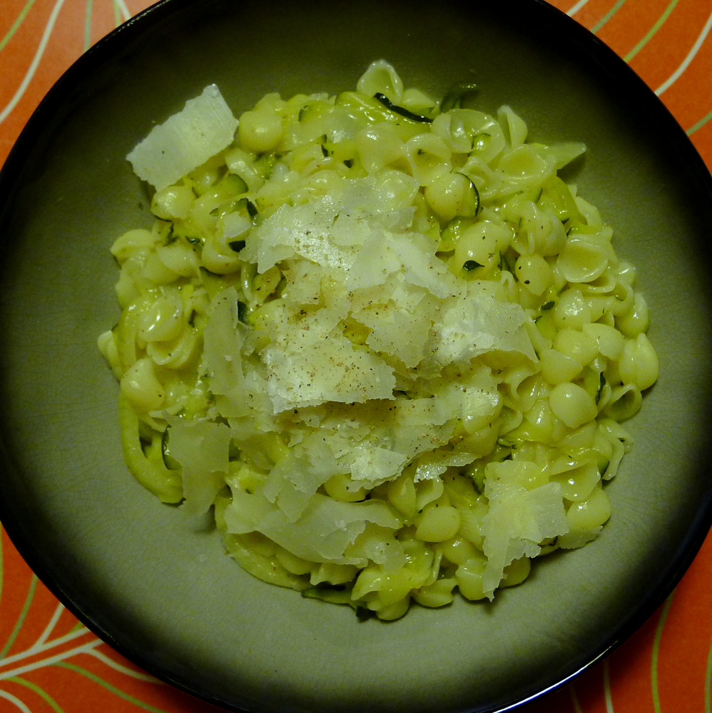 Mardi soir: je prépare un pastasotto à la courgette avec de petites pâtes rapportées de Hongrie.