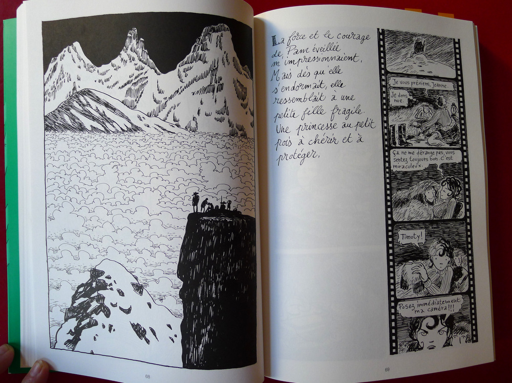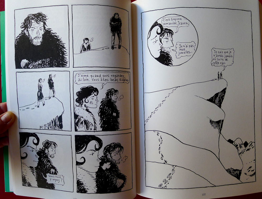 Jeanne Picquigny est l’une de mes héroïnes préférées: féministe en diable, voyageuse intrépide, jamais esclave des conventions, finement ironique et passionnément amoureuse d’un homme abîmé par la vie, témoin et raconteuse de son époque. J’ai été ravie de retrouver ses aventures trépidantes, qui flirtent souvent avec le mysticisme et sont empreintes d’une sensualité crue comme on en voit rarement dans la bédé généraliste. Le parallèle instauré ici avec la vie de sa petite-fille apporte une dimension supplémentaire à l’histoire, celle du souvenir et de la transmission. Dans les années 1920 ou presque un siècle plus tard, les personnages secondaires sont toujours aussi barrés, forts en caractère et hauts en couleur. Et je ne me lasserai jamais des superbes paysages et intérieurs pleine page dont Fred Bernard émaille généreusement ses albums. « La paresse du panda« : encore une belle réussite pour une série dont la qualité ne fait que croître au fil des tomes.