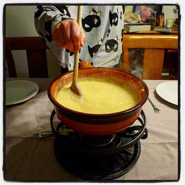 Comme d’habitude, nous avons pris le train pour rejoindre Lausanne où Funambuline nous attendait à la gare. Il faisait un temps magnifique au bord du Léman et je n’arrêtais pas de répéter en boucle: « Qu’est-ce que c’est beau… qu’est-ce qu’on est bien… qu’est-ce que je suis contente… ». Avant d’aller déjeuner à la brasserie de Montbenon, nous avons pris le métro pour descendre jusqu’à Ouchy dire bonjour au lac. Et là, Funambuline nous a révélé le plan que Lady Pops, Shalf, Marika et elle avaient ourdi par MP sur Facebook tout en discutant avec nous sur un fil séparé où ils suivaient nos efforts pour tenter de les rejoindre. Sur une idée de Lady Pops, ces grands malades avaient prévu, au cas où nous serions coincés à Bruxelles, de partir de Lausanne samedi matin avec la Popsmobile, un caquelon, un kilo et demi de mélange moitié-moitié et une bouteille de vin blanc dans le coffre, plus une glacière pour ne pas que la crème double des meringues tourne, et de se taper toute la route jusqu’à Bruxelles afin que j’aie quand même ma fondue d’anniversaire et que je ne sois pas seule pour mes 45 ans. Ceci, alors que Lady Pops partait en vacances avec sa famille, également en voiture, le lundi matin, que Funambuline est actuellement à la limite de la hernie discale et peine à rester en position assise plus d’une heure d’affilée, et que Marika est tellement débordée de boulot qu’elle doit bosser sept jours sur sept pendant tout le mois à venir.