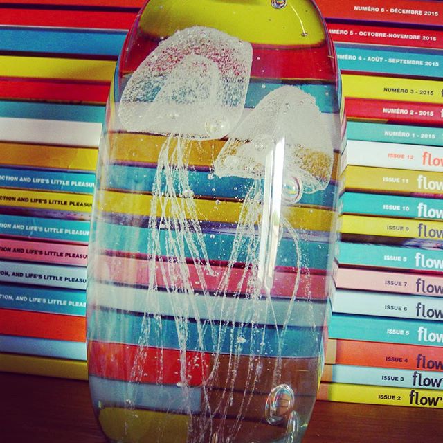 Samedi: le plombier répond enfin à mes messages: il passera mercredi soir / m’offrir une bougie Yankee Candle citron-lavande et un superbe, euh, presse-papier (?) en verre avec un couple de méduses à l’intérieur / les salsiccie e friarelli et le sublime baba au rhum de La Fabbrica Di Marco / me sentir si bien là avec cette adorable équipe que mon bouquin et moi traînons à table jusqu’à 15h15 / « Rosalie Blum », le film – qui me donne envie de relire « Rosalie Blum », la bédé / l’idée géniale qui va faire de moi la meilleure tante du monde (merci, Gasparde)
