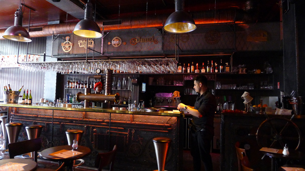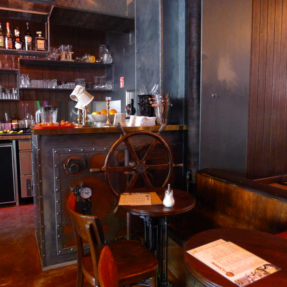 Pour l’ambiance steampunk, à Paris, il y a Le Dernier Bar Avant la Fin du Monde. Mais à Bruxelles, rien du tout jusqu’au mois dernier. Puis La Machine a ouvert discrètement le 11 mai face aux Halles Saint-Géry, à deux pas de la Bourse… Sitôt informée, je m’y suis précipitée pour tester.