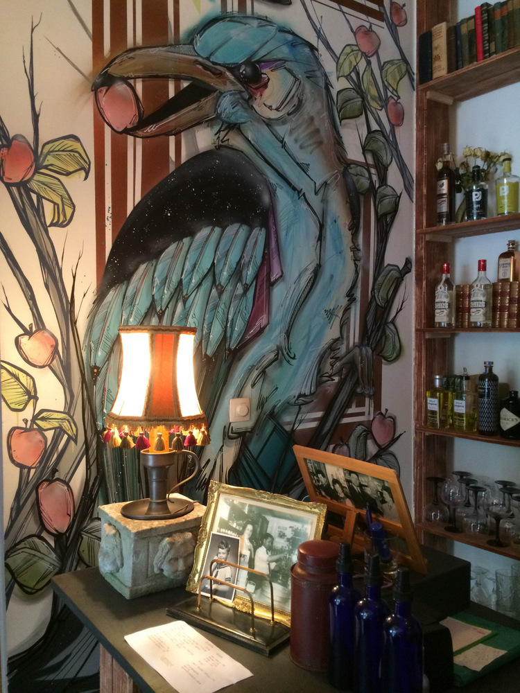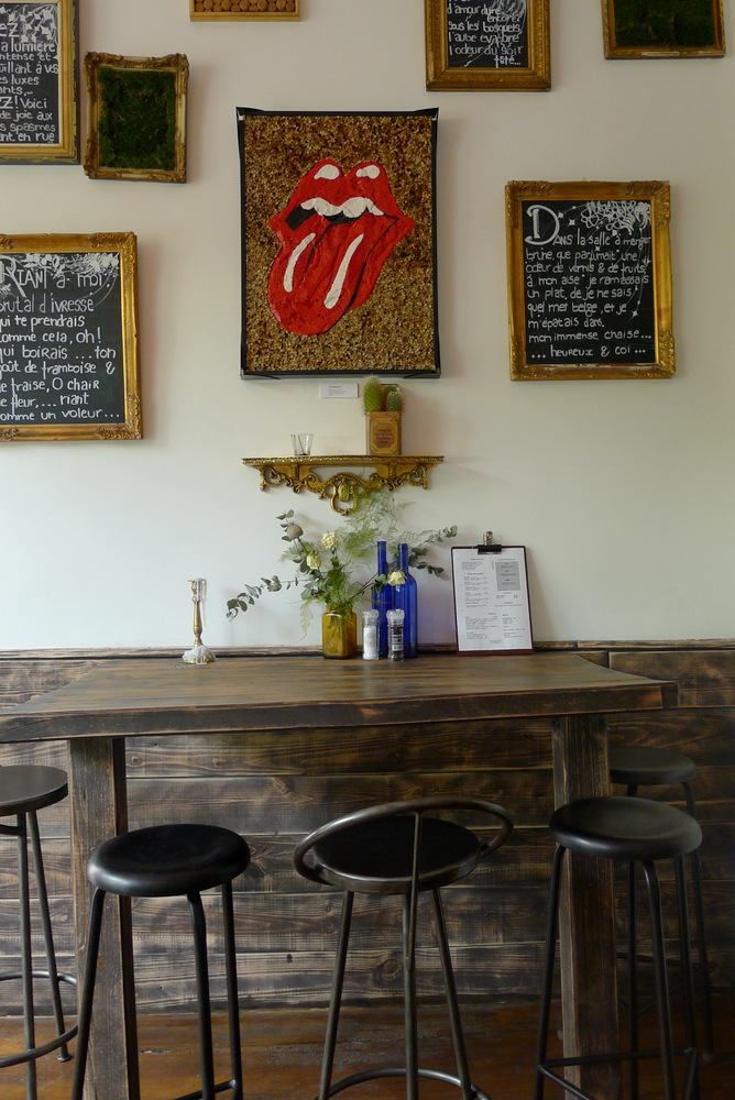 Arrivés vers 13h45, nous avons eu la possibilité de nous installer soit à l’étage, très lumineux et très cosy, mais où avait lieu un mini concert, soit au rez-de-chaussée où il n’y avait personne d’autre, et comme je trouve la musique live très distrayante (mais pas au bon sens du terme) quand je mange, j’ai opté pour la seconde solution.