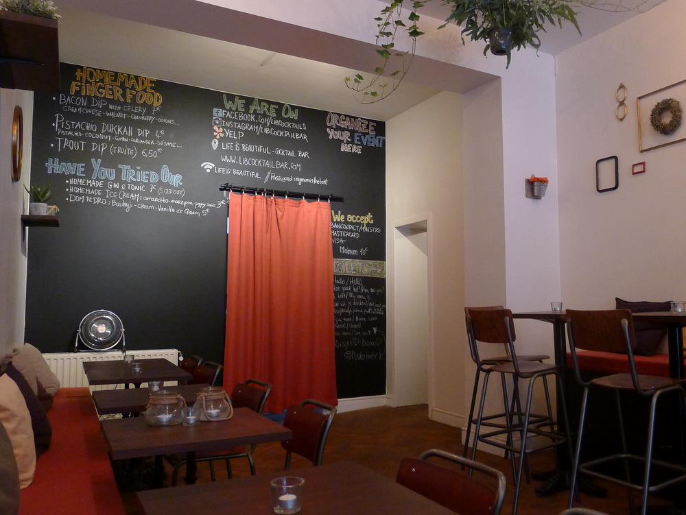 La semaine dernière pendant mon séjour à Toulouse, j’avais bavé devant les Instagrams de Sunalee, Gasparde et Ness qui testaient ensemble un nouveau bar à cocktails dans le centre de Bruxelles. Je me suis précipitée au Life is Beautiful (rien que ce nom…) dès mon retour de vacances ou presque. A 18h15, la petite terrasse donnant sur la rue Dansaert était déjà pleine mais la salle encore vide, ce qui m’a permis de discuter avec le charmant barman et de me faire conseiller. Il faut savoir que je bois des cocktails depuis peu, qu’il existe des tas d’ingrédients que je n’aime pas ou que je n’ai jamais goûtés mais dont je me méfie: résultat, je retombe toujours un peu sur les mêmes classiques de composition assez simple, genre mojito ou caïpiroska. Mais là, j’avais très envie d’essayer quelque chose de nouveau et de plus sophistiqué.