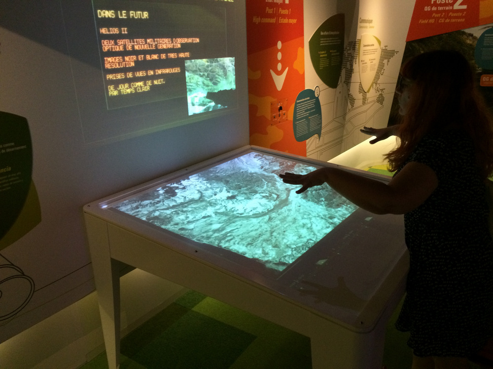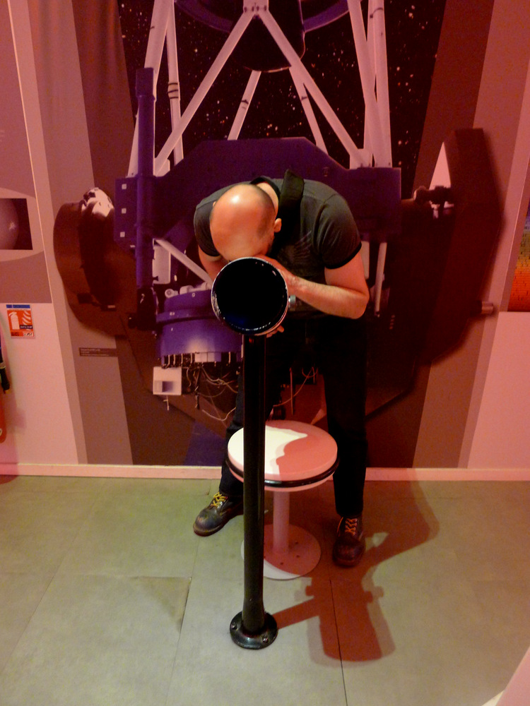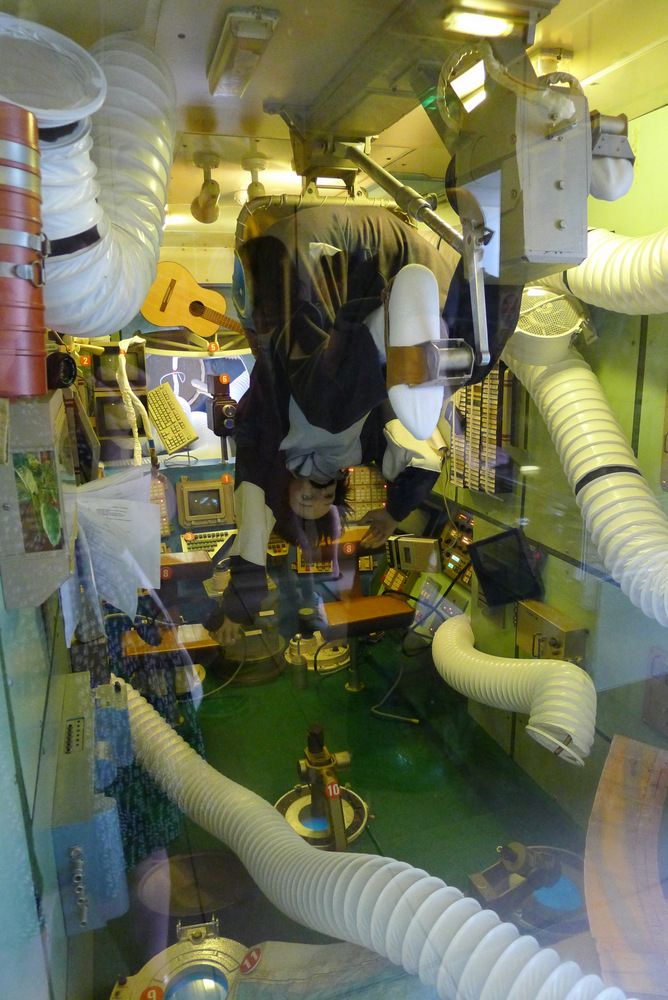 Nous entreprenons ensuite la visite des expositions. Et bien que Chouchou s’intéresse à l’espace infiniment plus que moi, sa réaction est la même. C’est très complet: si on veut tout lire, tout regarder et tout essayer, il y en a sans doute pour deux jours entiers. Et évidemment, c’est très très bien documenté. Mais plutôt austère et rébarbatif, pas du tout ludique comme d’autres musées scientifiques de notre connaissance. Même les « attractions » interactives sont chiantes. Du coup, nous passons assez vite, en nous attardant juste sur un élément qui retient notre attention par-ci par-là. Et en faisant, là encore, autant de photos que possible (car de ce point de vue, il faut avouer qu’il y a matière).