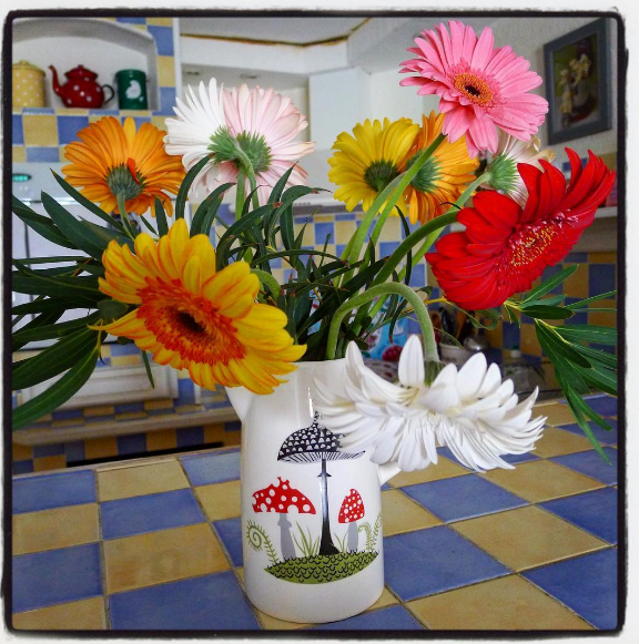 …et sans jour particulier: le bouquet de gerberas multicolores dans ma carafe Hannah Turner / plus de 20 ans après, « Neverwhere » m’emballe presque autant qu’à ma première lecture / l’odeur de ma bougie Pomelo & sea salt de chez Anthropologie
