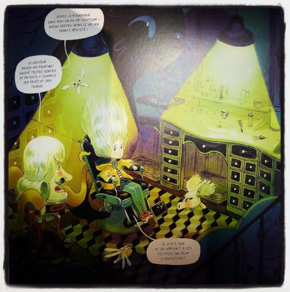 Mon coup de coeur bédé d’octobre, c’est cet album qui, s’il s’adresse apparemment aux enfants, aborde le problème de l’angoisse avec tant d’intelligence et de finesse que ça devrait aussi parler aux adultes concernés. (Suivez mon regard.) « Tu prends toujours tellement de place, dit Epiphanie à l’ombre-peur monstrueuse qui la suit partout. Je n’arrive plus à respirer. » Sur ces prémisses peu réjouissantes en apparence, Séverine Gauthier bâtit une histoire aux métaphores aussi justes que poétiques, superbement illustrée par Clément Lefèvre. La fantaisie de leur univers offre un contrepoint bienvenu à la pesanteur de leur sujet. Une vraie réussite.