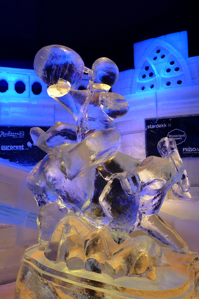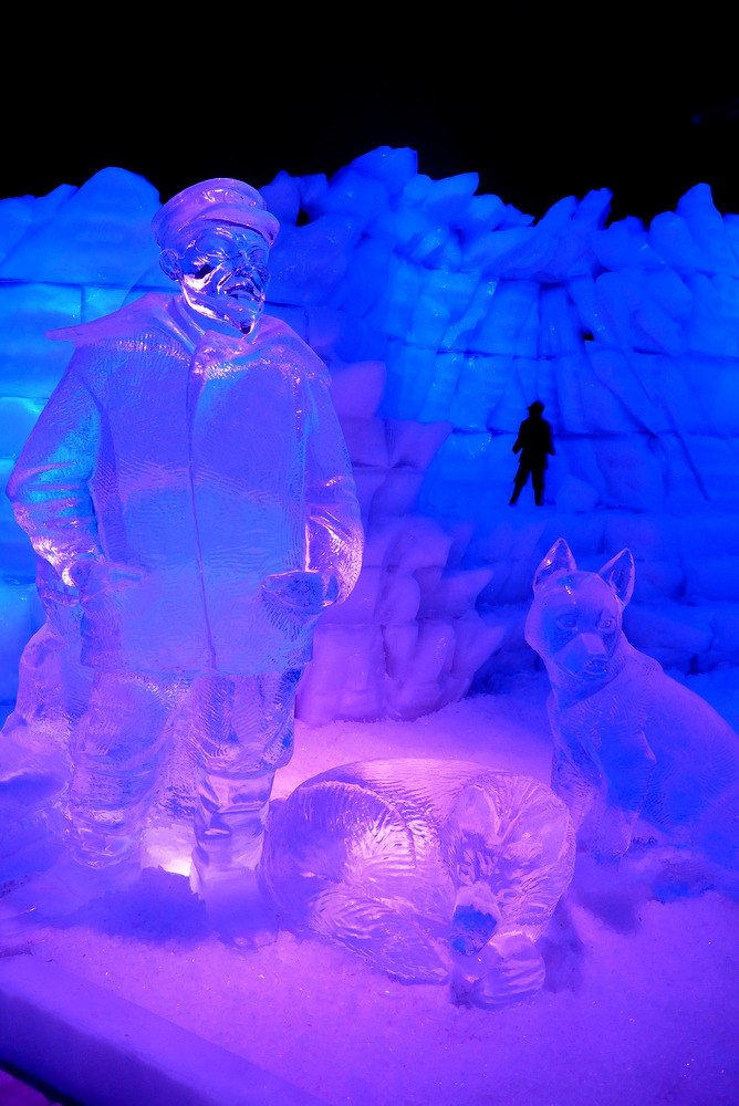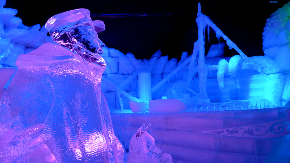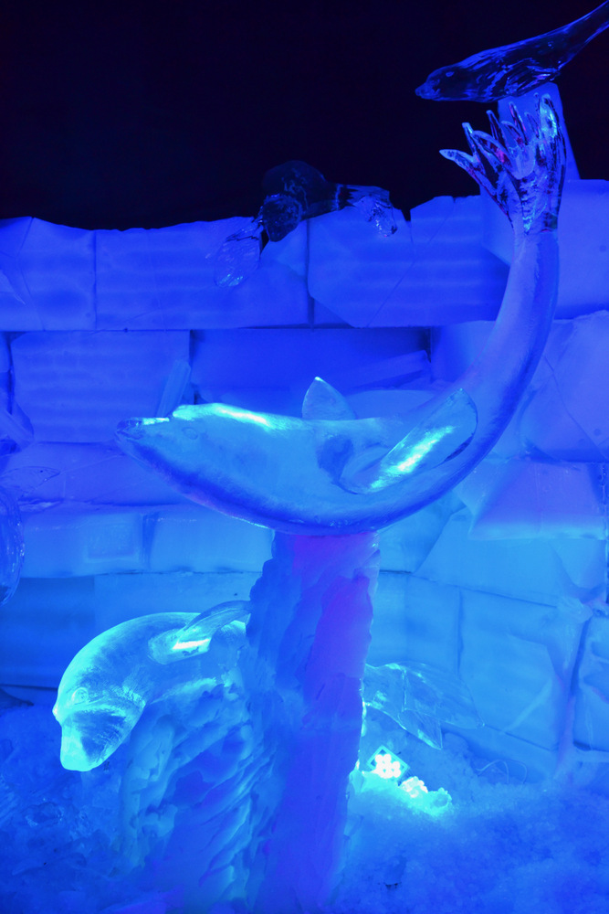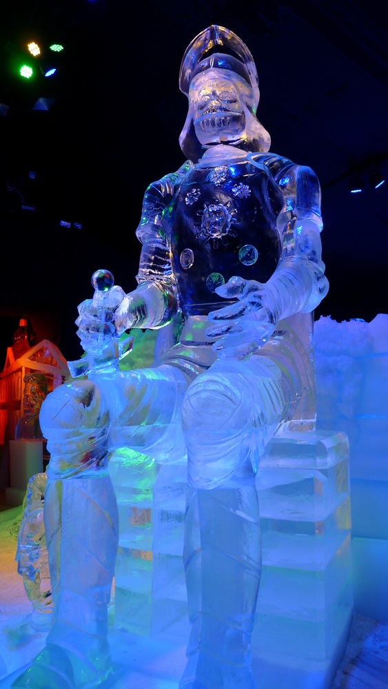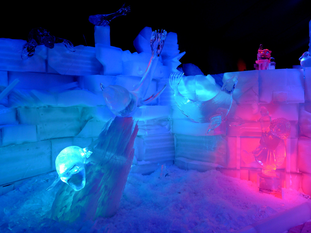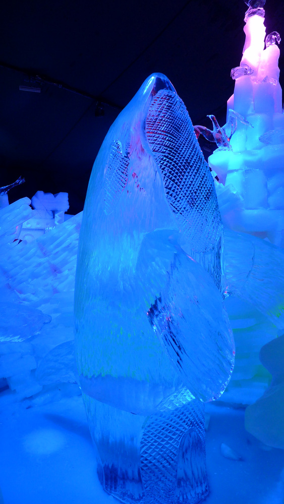 Alors, oui, les sculptures en elles-mêmes sont toujours aussi réussies, finement ouvragées et bien mises en valeur par un choix judicieux d’éclairage ainsi qu’une disposition qui permet de les admirer sans être gêné par les autres visiteurs. Je regrette toutefois l’absence de panneaux explicatifs: j’aurais trouvé ça bien de donner les noms des animaux représentés et, pendant qu’on y était, de glisser un petit message sur la disparition annoncée de la banquise et la menace que ça représente pour nombre d’espèces. Et au final, un aller-retour en train depuis Bruxelles plus une entrée plein tarif par personne, ça fait quand même beaucoup de temps et d’argent pour dix minutes d’attraction. Une déception, donc.