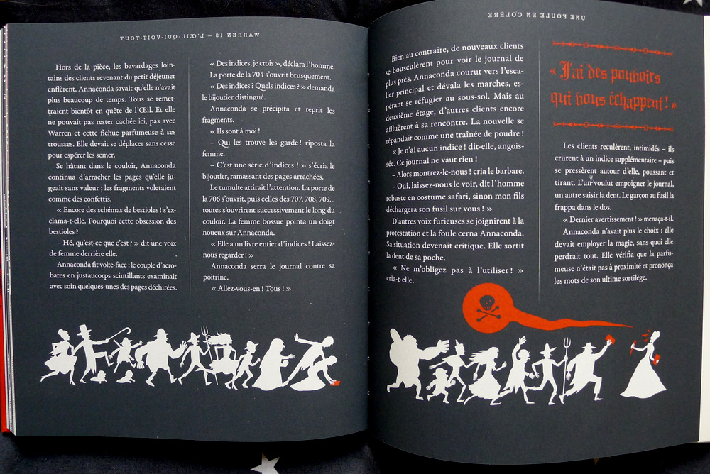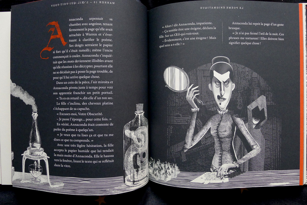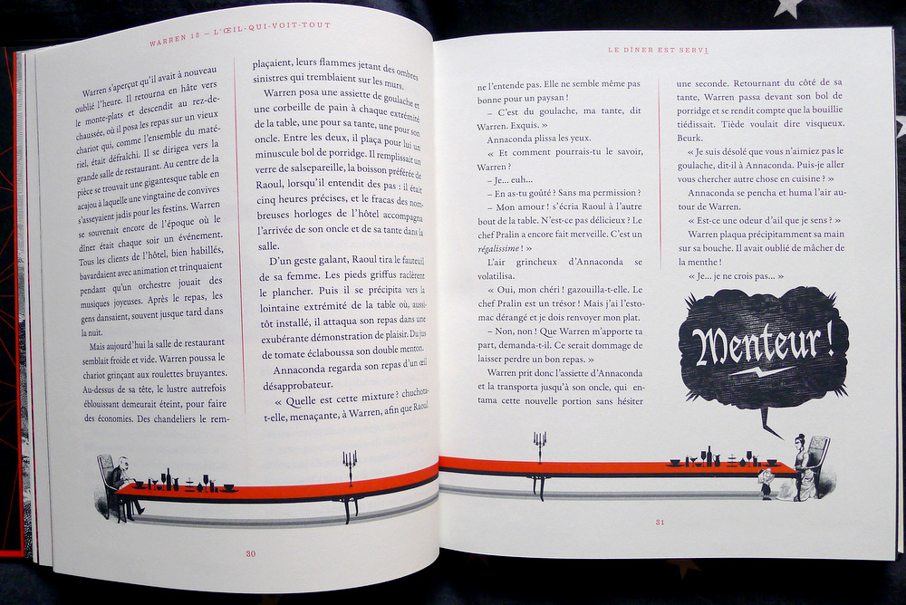 Sur ces prémisses au croisement d' »Harry Potter » et de « La famille Addams », Tania del Rio bâtit une histoire fantastique délicieusement gothique, et surtout merveilleusement illustrée en rouge et noir par la talentueux Will Stahle. Immense et décrépit à souhait, l’hôtel Warren offre un cadre à l’atmosphère intrigante pour ces aventures d’un jeune héros au physique ingrat mais au caractère attachant. De l’amitié, du surnaturel, un mystère à élucider et un final spectaculaire feront de « Warren XIII: L’oeil-qui-voit-tout » un excellent cadeau de Noël pour les préados de votre entourage amateurs de ces genres.