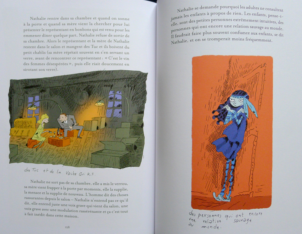Belle surprise que cet ouvrage conçu conjointement par l’écrivaine Véronique Ovaldé et le bédéaste multi-casquettes Joann Sfar. J’imaginais une bédé classique lorsque je l’ai acheté sous cellophane; en réalité, il s’agit plutôt un court roman illustré en grand format. Difficile à classer dans une bibliothèque, donc – mais qu’importe: c’est une merveille de sensibilité et de nostalgie, à la prose évocatrice et délicieusement fantaisiste.