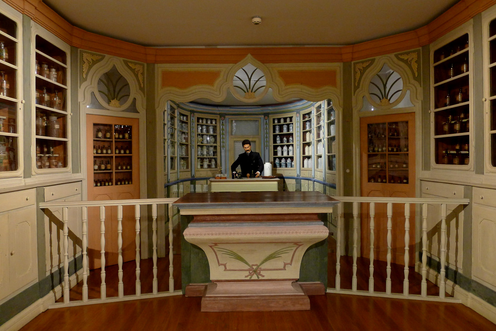 Malgré la regrettable absence de textes explicatifs dans une langue autre que le portugais (soyons honnête: 5 mois de cours quotidiens sur Duolingo permettent de commander dans les restaurants et de comprendre vaguement la langue à l’écrit, mais ne donnent en aucun cas un vocabulaire médical suffisant pour ce genre de circonstances), j’ai trouvé la visite passionnante et la scénographie extrêmement bien conçue. Traduire: j’avais envie de voler tous les accessoires pour redécorer le duplex de Monpatelin. Dommage que la « boutique » du musée ne propose que des reproductions de boîtes à remèdes – certaines affiches d’époque auraient fait de formidables cartes postales, et j’aurais volontiers payé un supplément bagages à Brussels Airlines pour une copie des mini-commodes à médicaments afin d’y ranger mon thé.