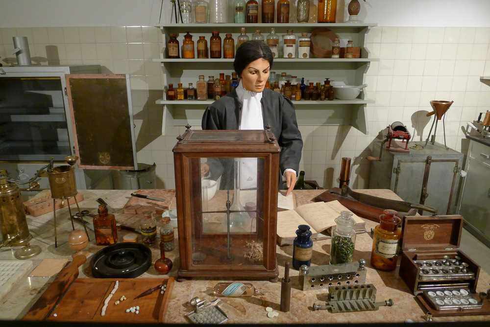 Depuis le temps que je raconte ma vie ici, j’ai sûrement déjà écrit que quand j’étais petite, je rêvais de devenir alchimiste. Passer mes journées seule dans un labo mal éclairé aux étagères pleines de bocaux poussiéreux, et d’après les instructions d’un vieux parchemin moisi, mélanger soigneusement poudre de ceci avec bave de cela pour produire un remède miraculeux ou un poison foudroyant – telle était mon idée du bonheur. (Non, ma bizarrerie ne date pas d’hier.) Et si j’ai finalement opté pour une tout autre carrière, je reste fascinée par l’histoire de la pharmacie à travers les âges. Dès que j’ai l’occasion de visiter une expo ou un musée qui lui est consacré, je fonce. A Lisbonne, le hasard a justement voulu que notre appart’ Air B’n’B se trouve à quelques centaines de mètres du Museu da Farmacia…