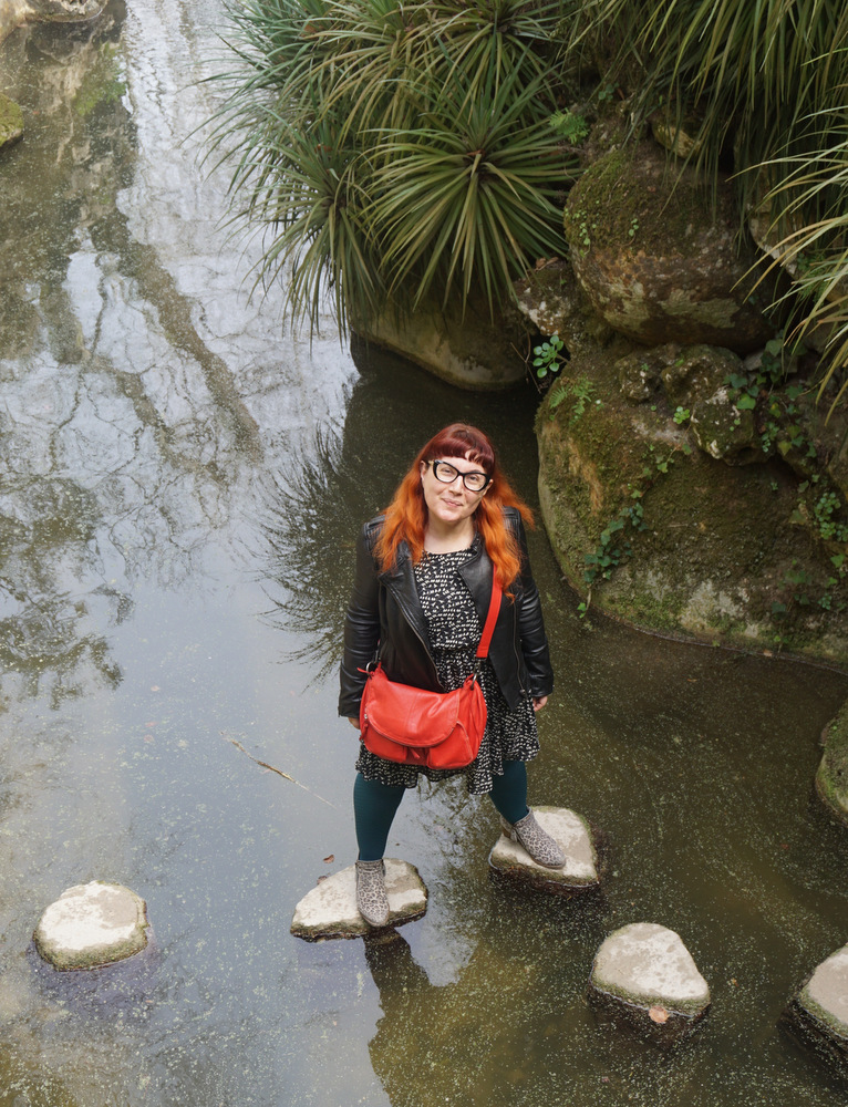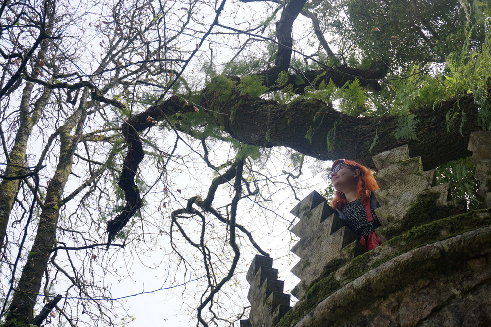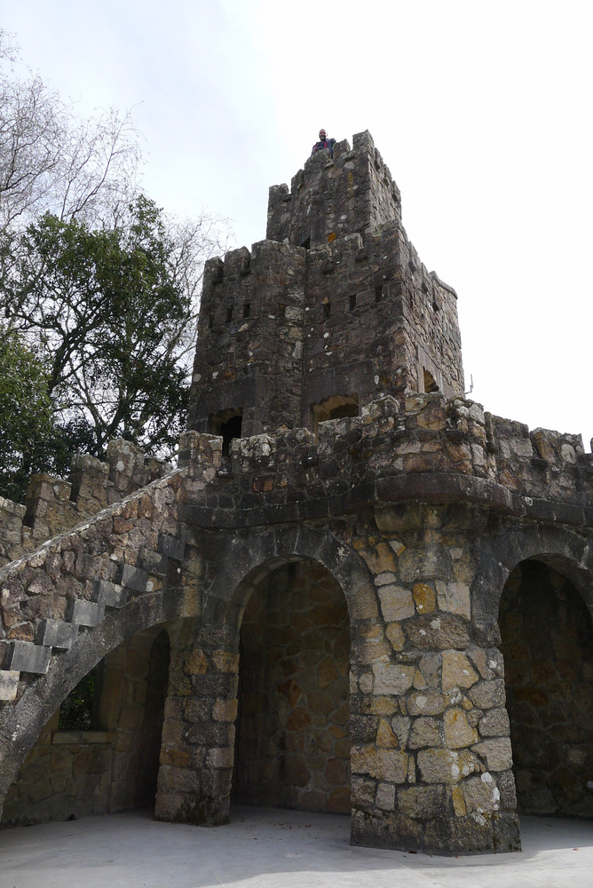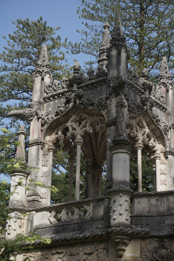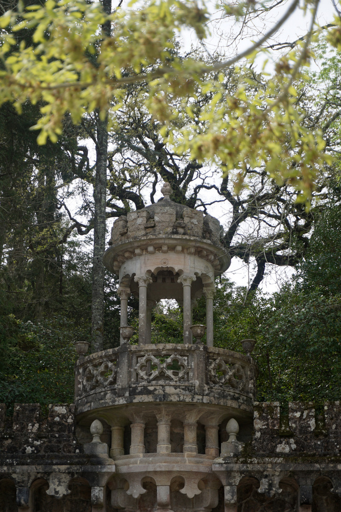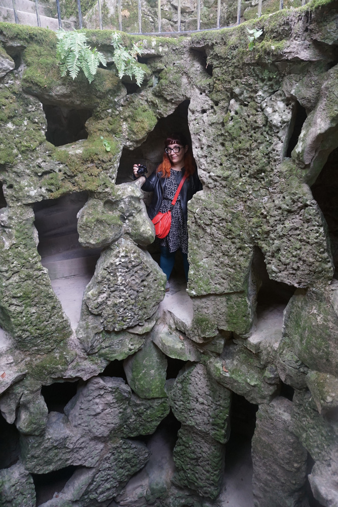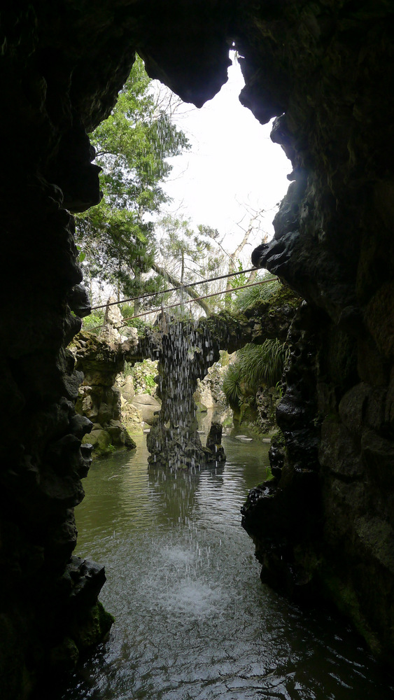 Ce qui m’avait attirée dans ce lieu sans l’avoir vu, ce sont les nombreuses références à l’alchimie et la franc-maçonnerie ayant présidé à son élaboration. Malheureusement, sans visite guidée ni possibilité d’acheter un ouvrage explicatif puisque la minuscule boutique était fermée ce jour-là, les références en question nous sont complètement passé au-dessus de la tête, et la Quinta de Regaleira a gardé tous ses mystères. Ce qui ne nous a pas empêchés d’être complètement éblouis par son parc fantasmagorique, échelonné à flanc de montagne et regorgeant de puits, d’escaliers, de tours, de fontaines, de cascades et de grottes. Des heures d’exploration et des centaines de calories brûlées à la force des fessiers!
