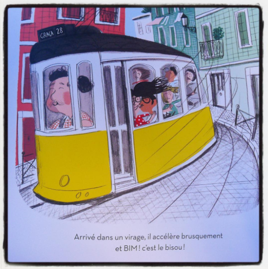 Bonjour, je m’appelle Armalite et j’achète des livres pour enfants juste pour les jolis dessins. Ici, ceux de Magali Le Huche dont j’avais adoré la version illustrée du roman jeunesse « Verte » de Marie Desplechin. En plus, l’histoire se passe à Lisbonne, une ville que j’adore et où j’ai déjà séjourné deux fois. Le tram 28, d’un jaune bien pimpant, est une institution là-bas: il monte et descend à travers les quartiers populaires, dans des passages parfois à peine plus larges que lui et en dessinant des virages hyper serrés.