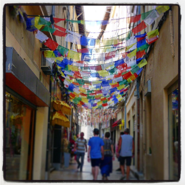 C'est quelque part dans le centre piétonnier d'Avignon 🙂 On voit de plus en plus ce style d'installation; l'an dernier j'avais photographié des parapluies à Namur…