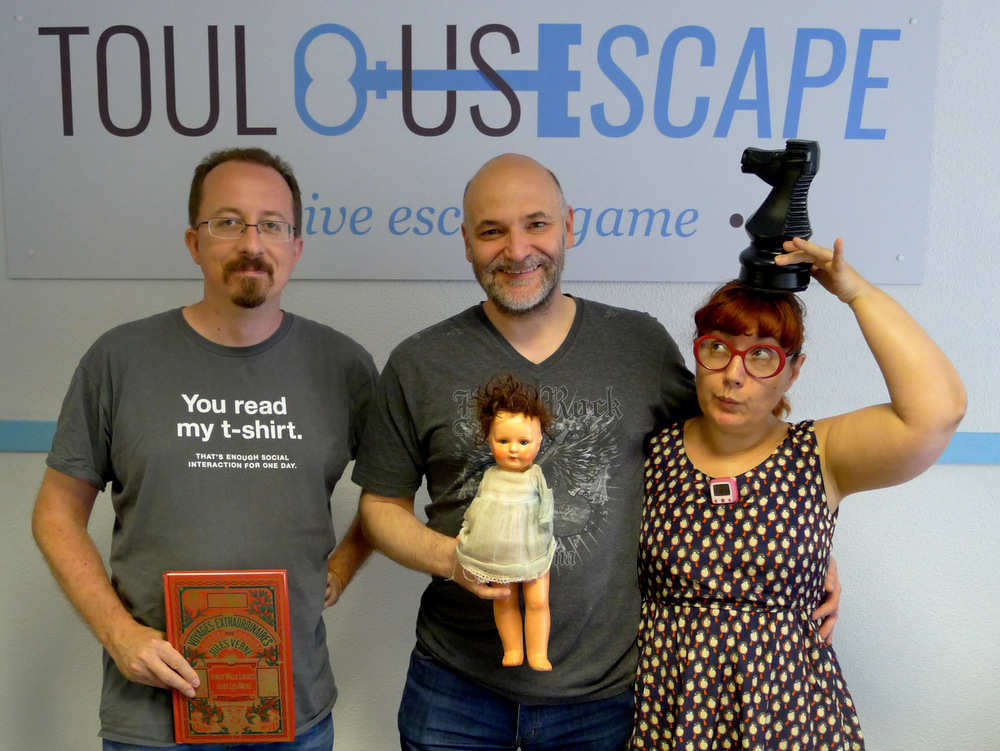 Pour cette seconde salle de la semaine, réputée très difficile selon les avis des joueurs passés avant nous, Chouchou et moi avions fait appel à notre copain Kettch que nous n’avions pas réussi à voir depuis longtemps et qui se trouvait justement en vacances à Toulouse en même temps que nous. Il n’avait encore jamais eu l’occasion de tester un escape game; c’était donc une bonne occasion!