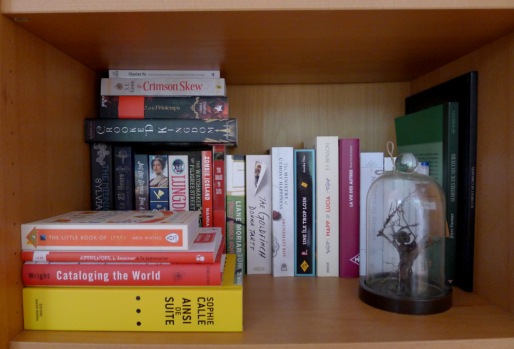 Le grand tri de début septembre a été l’occasion de faire du ménage dans ma PAL. Je me suis aperçue que plus un livre traînait dans celle-ci, moins il avait de chances d’être lu au final: je suis toujours intéressée en priorité par mes achats récents. Donc, il ne sert à rien de conserver des ouvrages pendant des années et des années comme ça m’arrive encore de le faire. Voici ce que contient mon étagère à ce jour (mais il est fort possible que j’en élimine encore une dizaine de livres très prochainement):