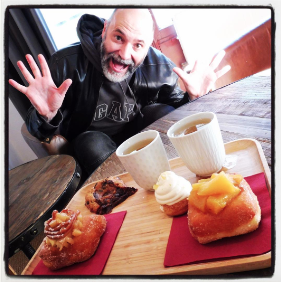 …après une heure d’acrobaties et plus de 10 000 pas, on est allés chez Chouconut se goinfrer d’un cookie caramel beurre salé/amandes/chocolat noir et un donut poire/vanille/caramel pour Chouchou, un petit chou vanille/citron confit et un donut à l’ananas pour moi. Comme l’overdose de sucre ne nous avait pas tout à fait tués, on a pris deux autres donuts à emporter pour s’achever tranquillement à la maison manger en dessert le soir.