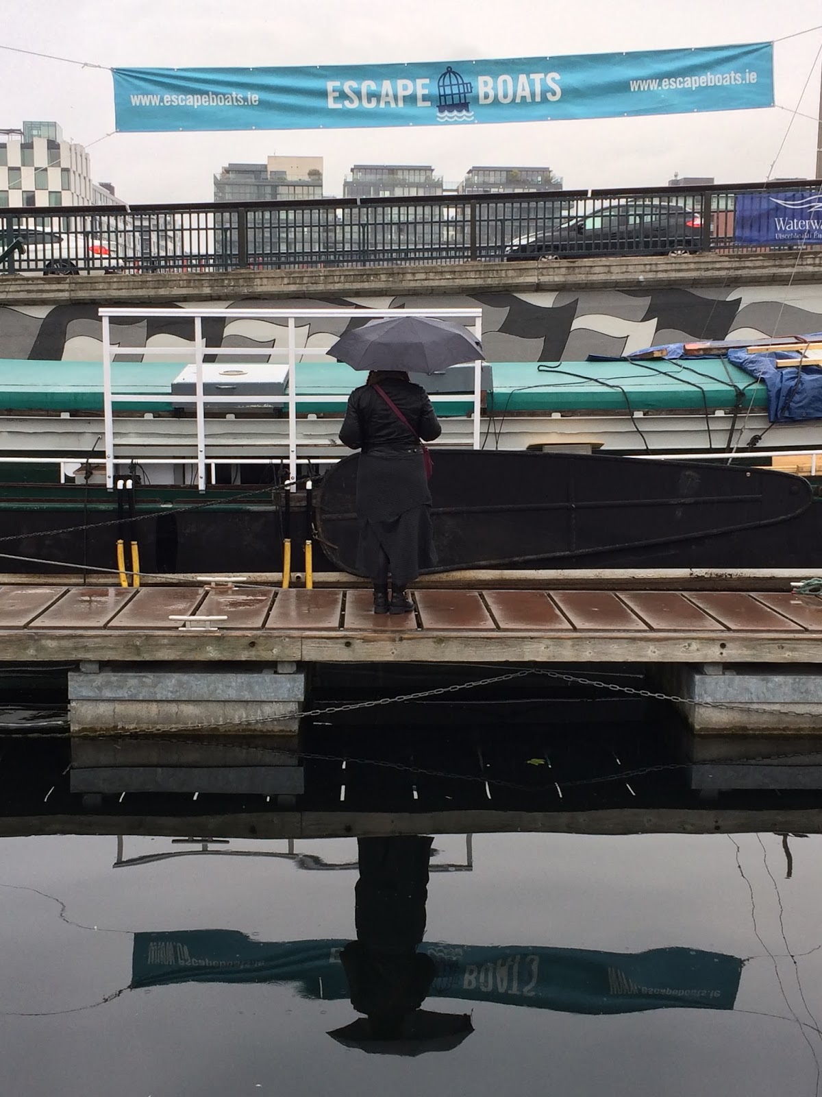 Pas facile de trouver à Dublin un escape game à la fois original dans son thème et accessible à une équipe de 2 personnes seulement. Je commençais à désespérer quand je suis tombée tout à fait par hasard sur le site d’Escape Boats, une toute jeune société entrée en activité au début de l’été et qui ne propose pour l’instant qu’une seule salle, mais… à bord d’un vrai bateau, le Zorg Ella. J’ai pensé qu’à défaut d’autre chose, nous aurions droit à un décor original et réaliste à la fois, et j’ai réservé pour la fin de notre dernier jour complet en Irlande – un dimanche qui s’est révélé gris et pluvieux, comme on peut le voir ci-dessus.
