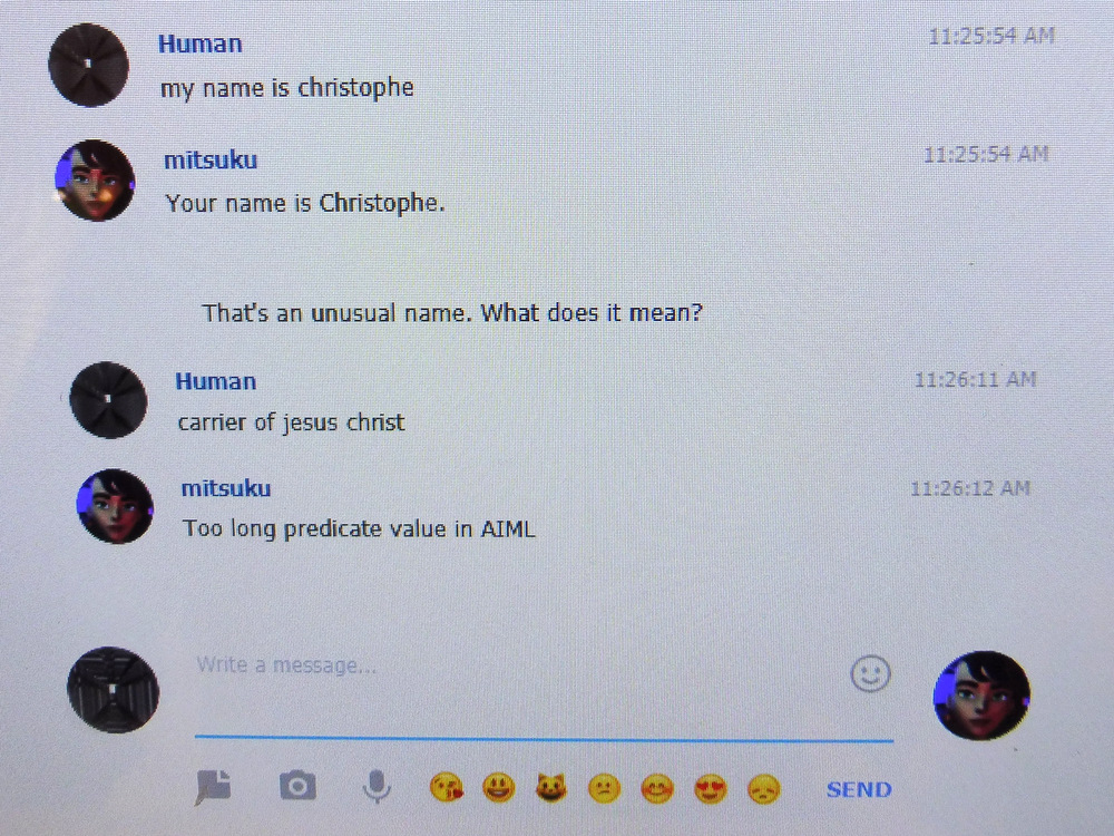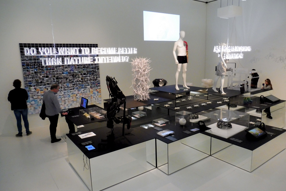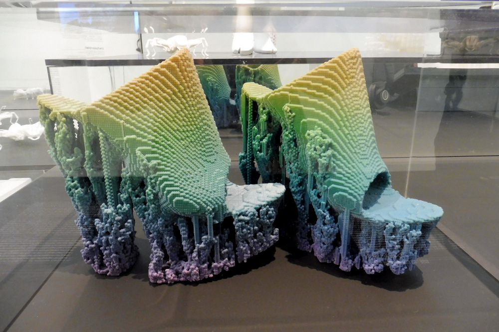 Et finalement, je ne l’ai pas regretté, car cette expo était très riche et tout à fait passionnante. Hé oui: la robotique, ce n’est pas qu’une poubelle à roulettes qui siffle et clignote dans un vieux film de SF un peu moisi (je sens que je vais me faire des amis, moi). La robotique, ce sont aussi des applications pratiques qui permettent de remédier à des problèmes humains, depuis l’assistance de vie et les soins aux personnes âgées ou autrement dépendantes, en passant par des prothèses fabuleuses qui redonnent leur mobilité aux amputés ou aux para/tétraplégiques. Et puis des trucs beaucoup plus rigolos comme les chaussures arc-en-ciel produites à l’imprimante 3D, les sex toys connectés ou un chatbot censé simuler l’interaction humaine – mais pas encore au point, comme on peut le voir ici: