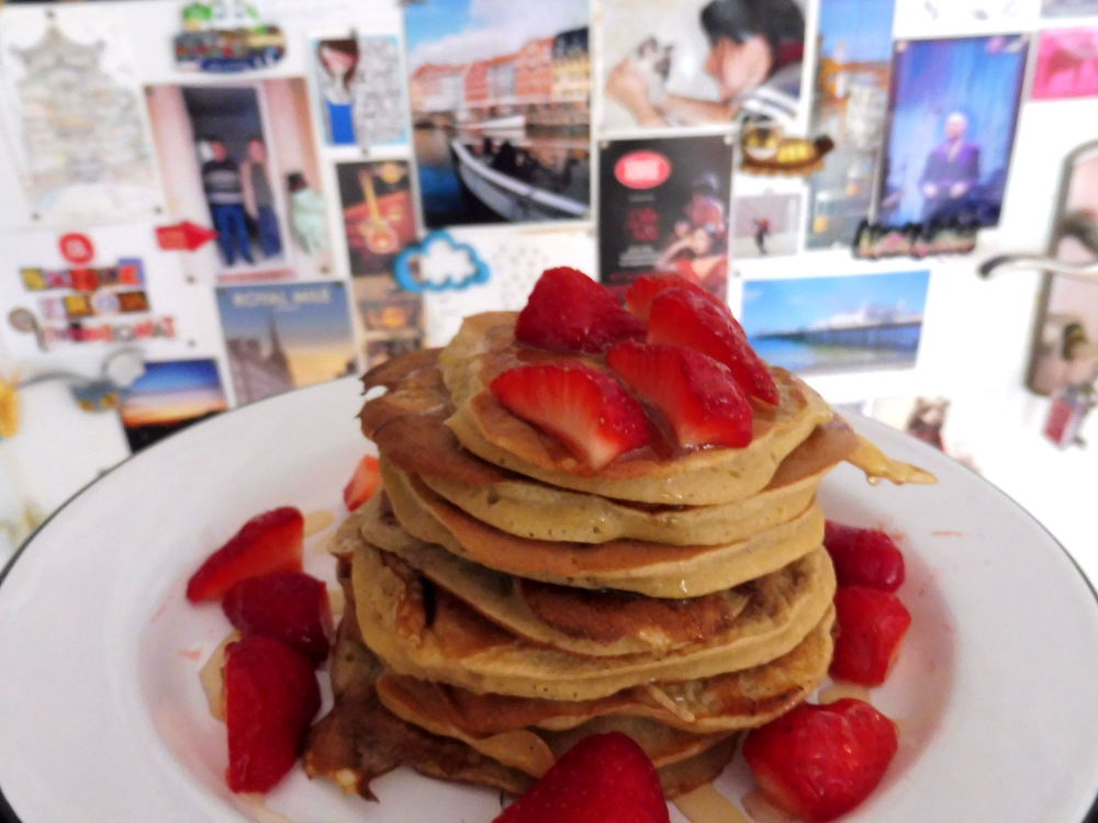 ★ Pour le goûter, je prépare cette recette de pancakes à la banane qui remporte un franc succès auprès de 100% des membres du foyer. A peine une minute pour préparer la pâte, pas besoin d’attendre qu’elle lève, et un dessert délicieux sans beurre ni sucre à la sortie: on dit oui!