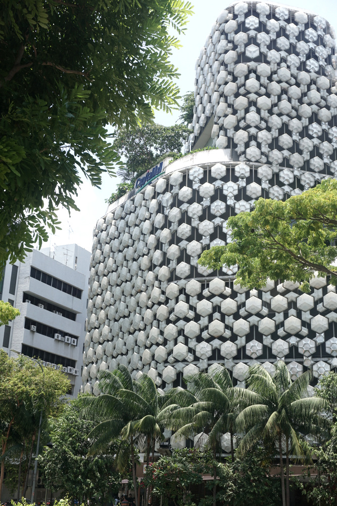 Première bonne nuit de sommeil depuis le début du voyage, ça fait du bien! Nous prenons notre temps ce matin et quittons l’hôtel vers 11h. Pour ce premier contact avec la ville, nous avons décidé de marcher. La chaleur est encore supportable à ce moment-là, mais nous réalisons assez vite que malgré ses larges trottoirs et les nombreuses galeries prévues pour fournir de l’ombre aux piétons, Singapour n’invite pas à la flânerie. D’ailleurs, les rares autres personnes que nous croisons dans les rues semblent essentiellement être des touristes comme nous. Pour autant, le nombre de voitures et autres véhicules en circulation reste assez raisonnable. C’est curieux, on dirait une ville semi-morte. Je ne sais pas comment se déplacent les gens qui justifient la débauche de centres commerciaux et de restaurants. Ont-ils accès à des passages souterrains interdits aux étrangers? Mystère.