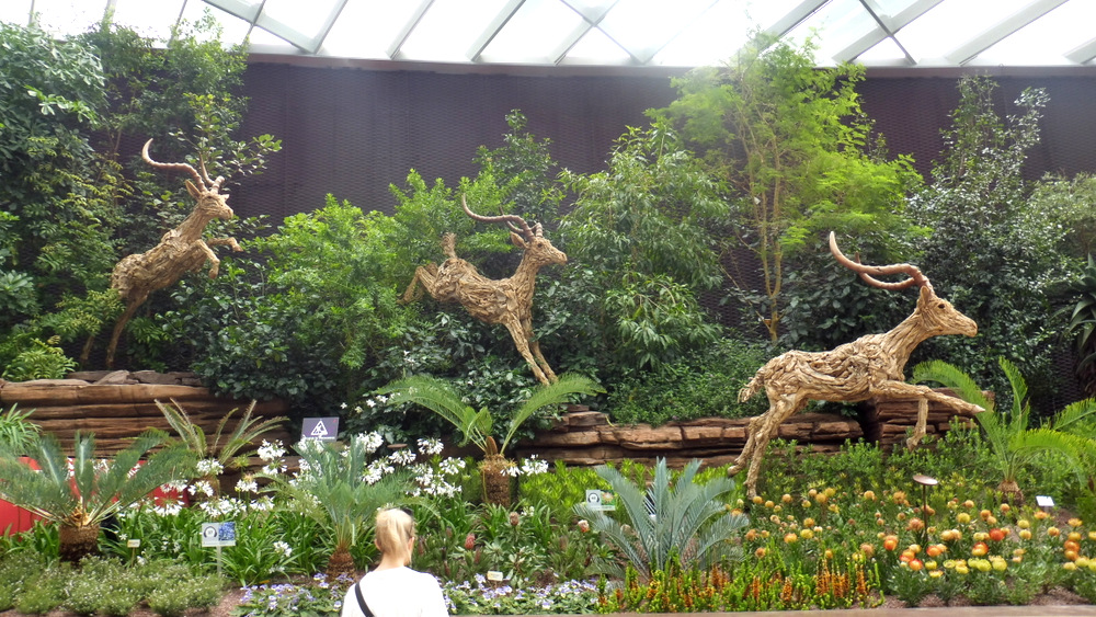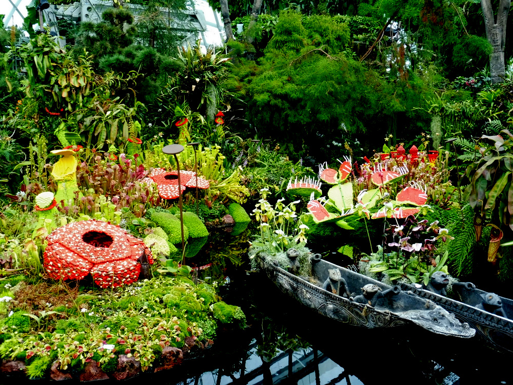 Après ce grand huit émotionnel, j’erre un peu hébétée dans les rayons de la boutique de souvenirs. Puis nous allons visiter l’autre serre, le Flower Dome, où des personnages de la littérature jeunesse se cachent parmi les plantes arrangées par région d’origine. C’est très joli et plaisant à visiter, même si ça ne me chamboule pas autant que la Cloud Forest. Devant un cactus hyper poilu à la forme particulièrement évocatrice, je fais des blagues de pénis avec un papa australien et son grand fils. Dans la partie « Méditerranée », je regrette de ne pas avoir apporté ma liseuse pour bouquiner un moment allongée sous les oliviers.