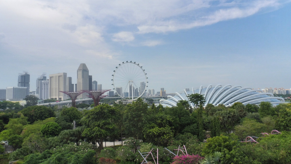Sur le chemin de la marina, nous nous arrêtons au centre commercial Raffle City où je fais de menues emplettes dans la boutique Paper Market dédiée aux fournitures d’art journaling. Au centre commercial Marina Square, nous cherchons le city tourist hub afin d’y acheter nos entrées pour les Gardens of the Bay avec la grosse réduction proposée par Booking.com, sur lequel nous avons réservé notre hôtel. Pour résumer une longue histoire ennuyeuse, le code QR refuse de fonctionner; nous devons finalement prendre des billets à tarif plein (alors que notre hôtel proposait aussi une réduction, juste moindre que celle de Booking.com), et avec tout ça, nous avons raté à cinq minutes près la navette qui passe seulement une fois par heure. Nous décidons donc de nous rendre aux jardins à pied. Sauf qu’entre-temps, la chaleur est devenue brutale, et qu’il n’y a pas un poil d’ombre sur le chemin. Nous souffrons et transpirons; je serais d’une humeur massacrante si j’en avais encore la force. Pour tout arranger, nous galérons un moment avant de trouver le chemin des serres. Quand je m’arrête aux toilettes avant d’entrer dans la première, je dois littéralement éplucher mes vêtements collés à mon corps par la sueur. (Aujourd’hui, je teste le short en jean, et malgré mon appréhension initiale, personne ne m’a encore jeté de pierres dans la rue.)